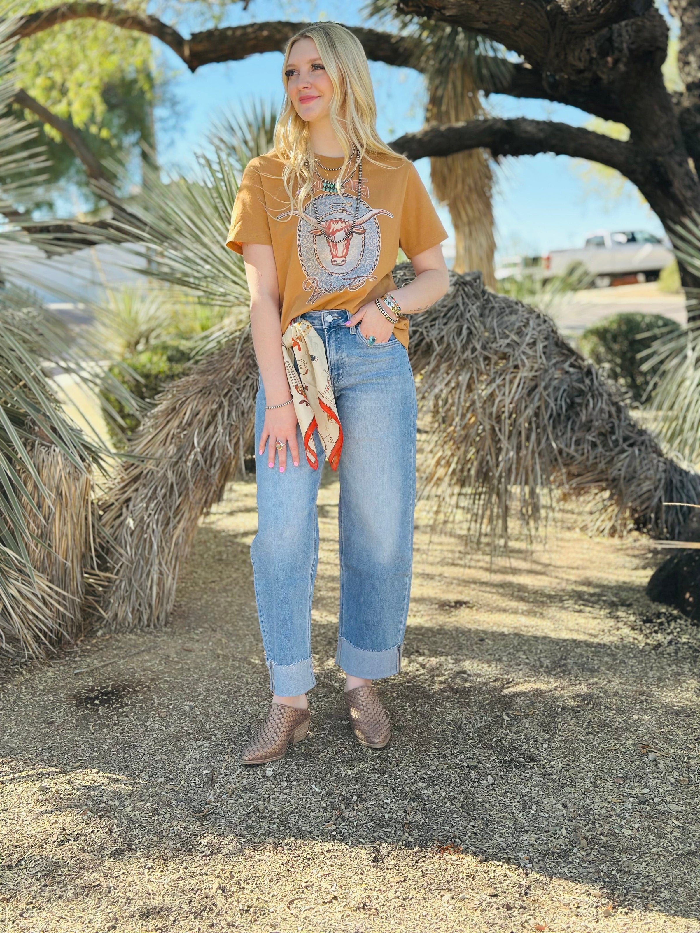 Step into the season in style with The Vervet Fall Into Autumn Cuffed Barrel Jean 🍂 — your new favorite denim for every occasion! This trendy 2025 silhouette features a comfortable stretch, high waist, and relaxed barrel fit that flatters every shape while keeping that effortless western vibe we love.