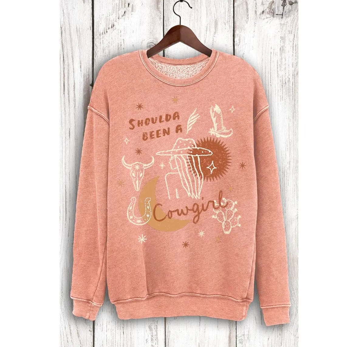The Shoulda Been A Cowgirl Peach Sweatshirt