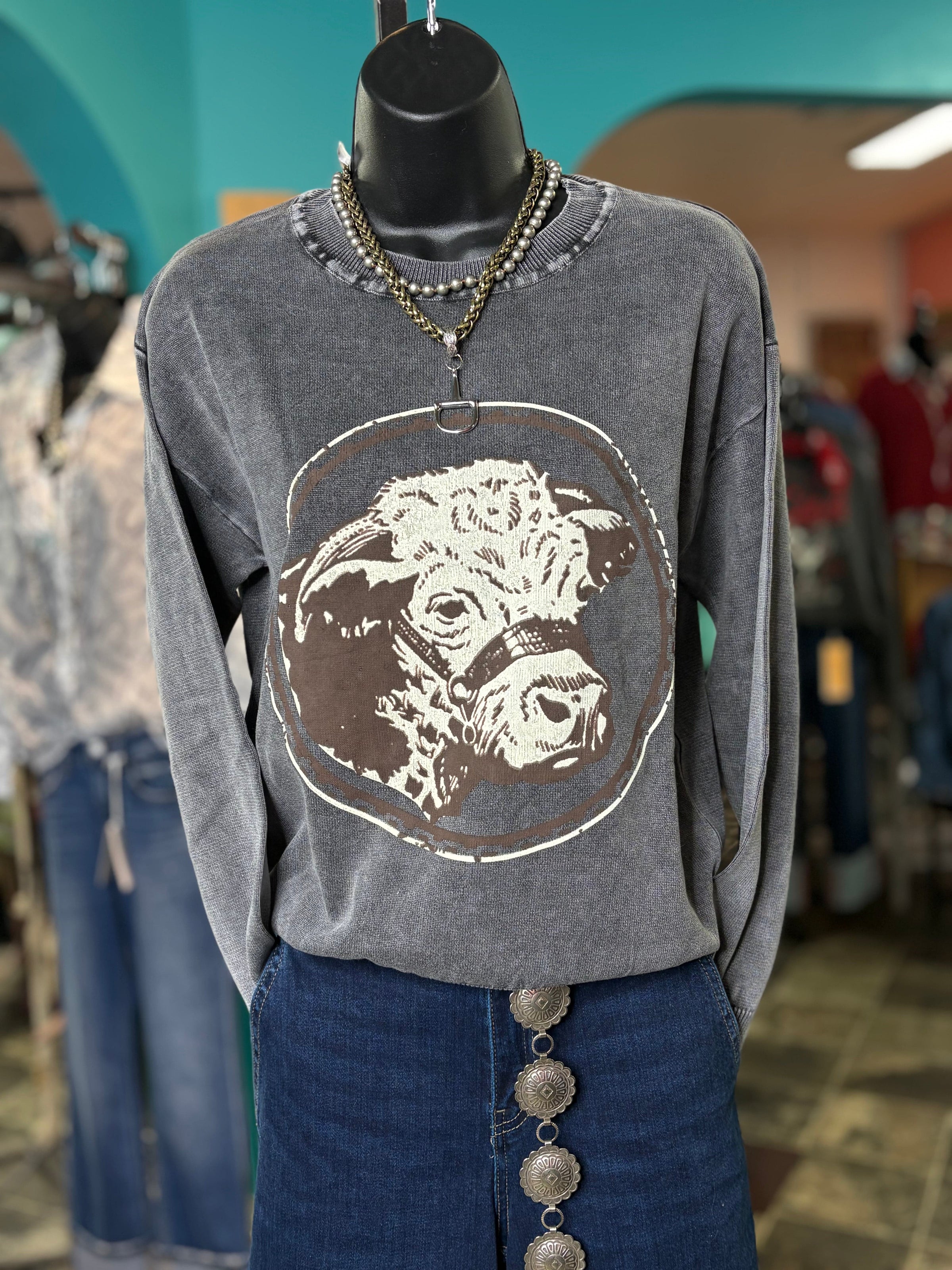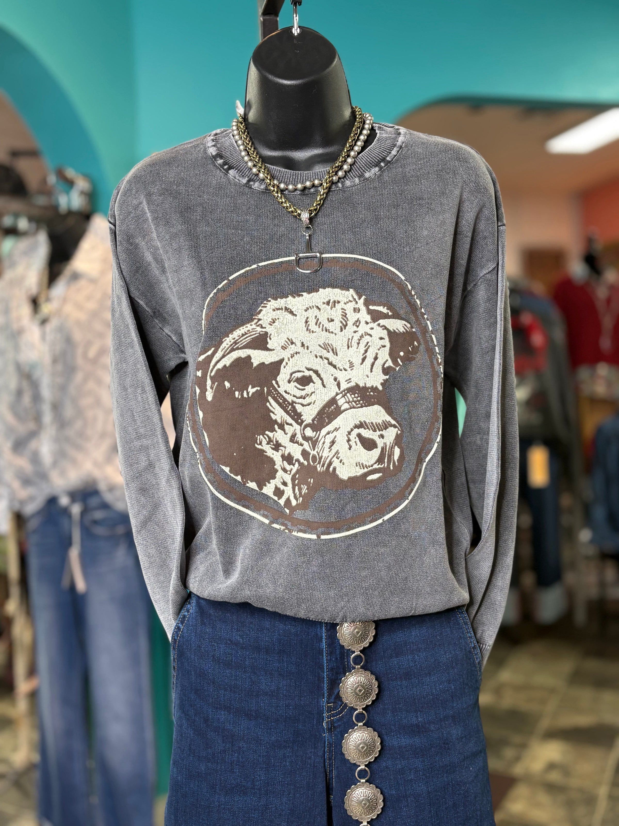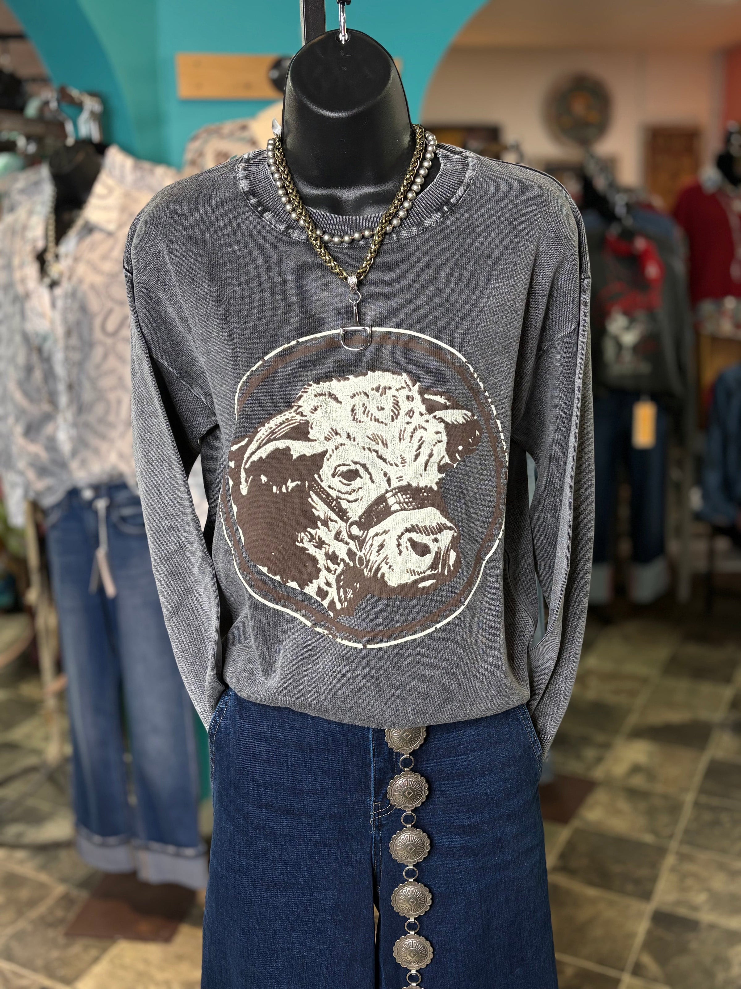 Showstopper alert! 🤎 This stunning pullover brings all the classic Southwest vintage vibes with its fun retro horned Hereford bull. Designed in rich spring-ready colors, it’s crafted from a super soft knit with a flattering, easy fit you’ll reach for again and again. Cozy, eye-catching, and totally cowgirl-approved—this one’s a must for spring layering.