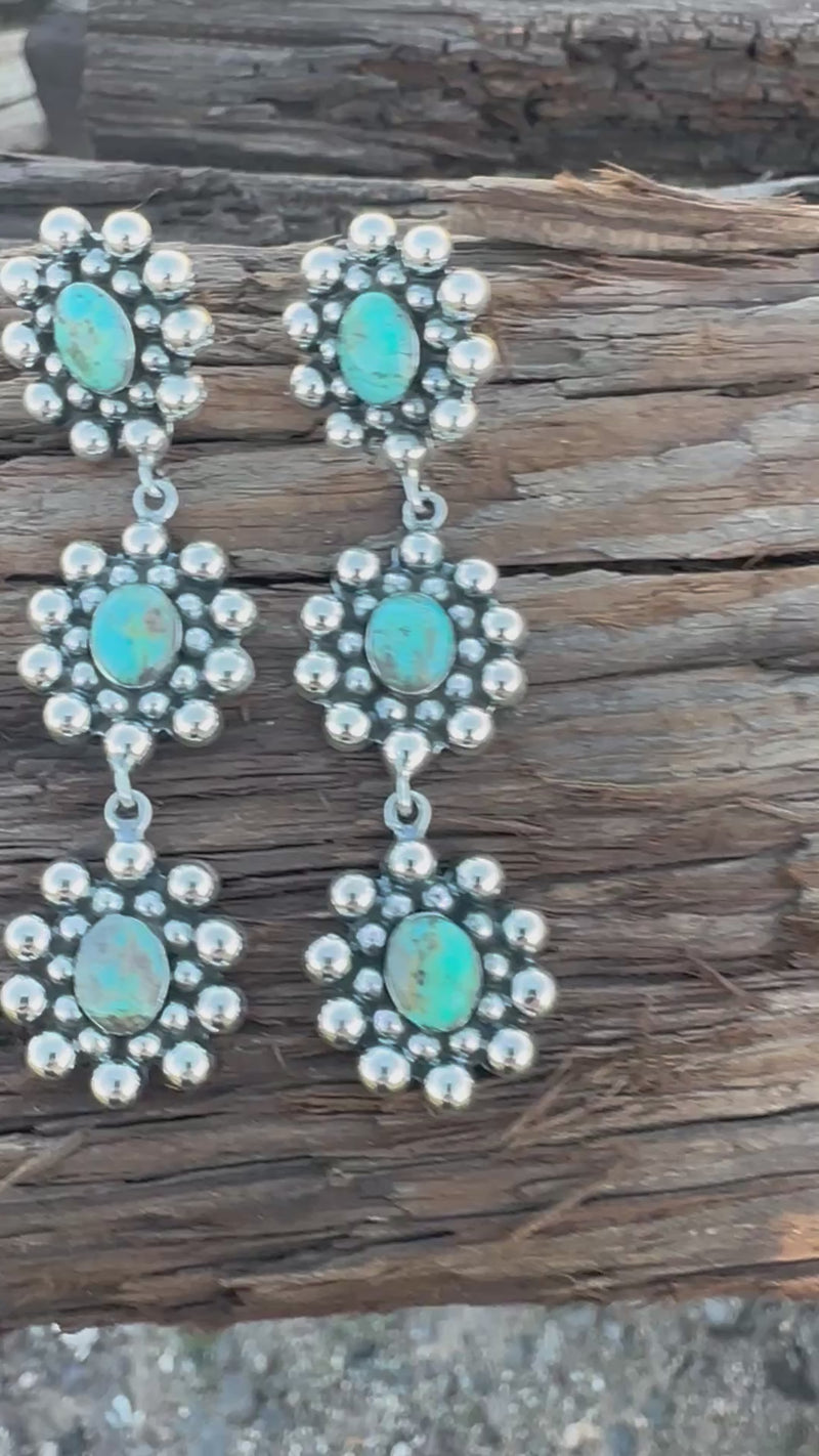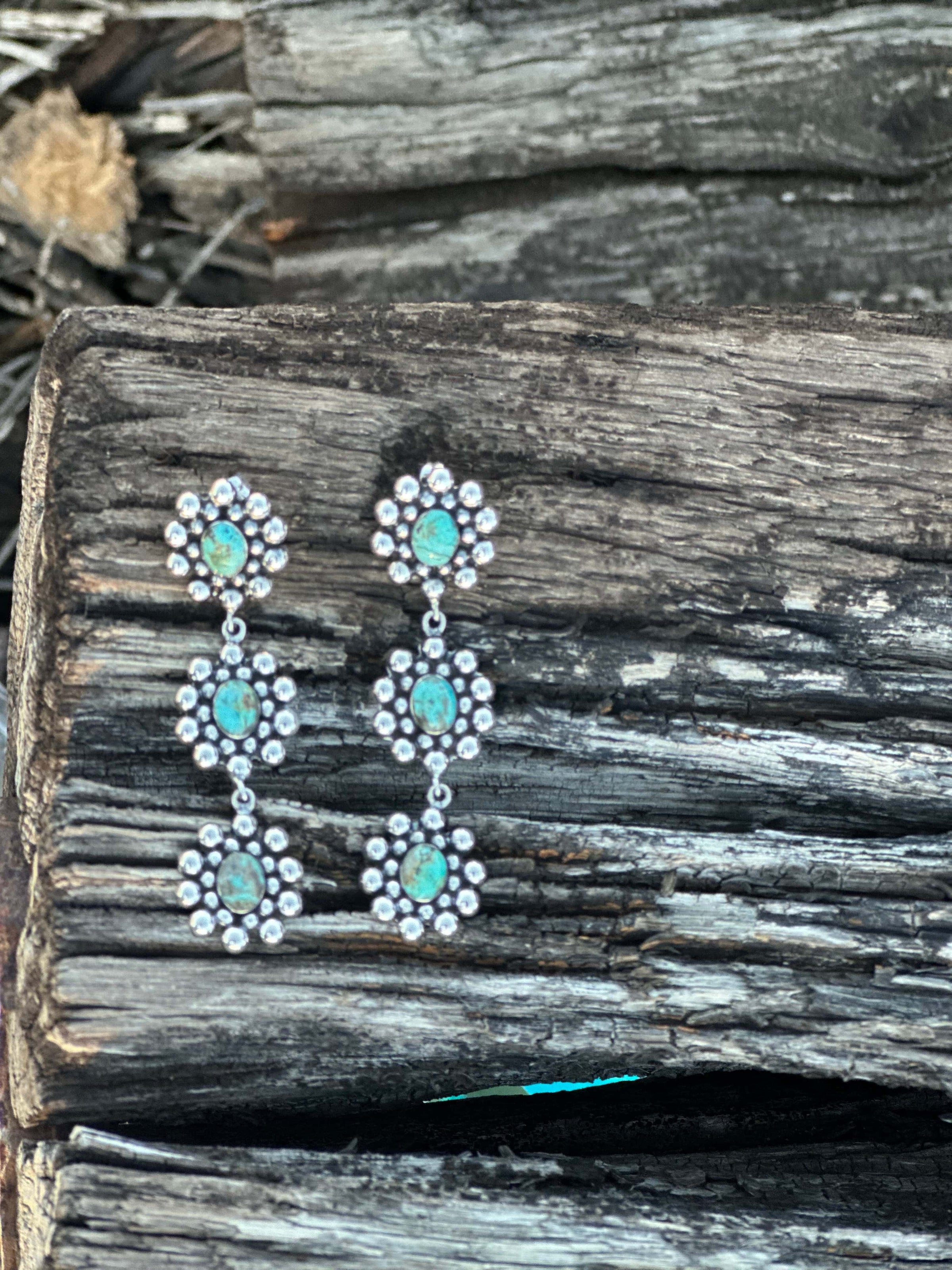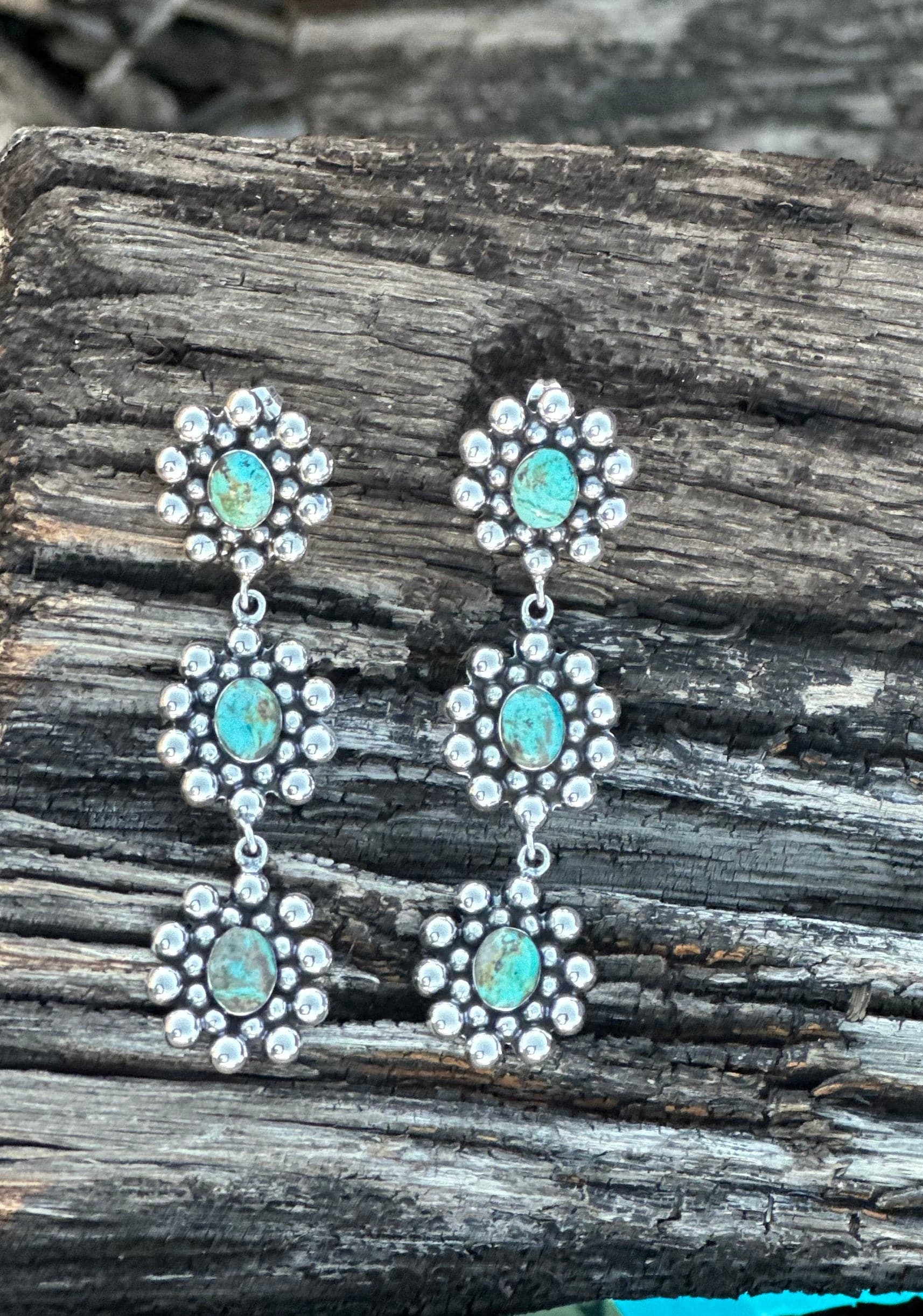 The Sterling Silver & Cluster Turquoise Triple Drop Earring