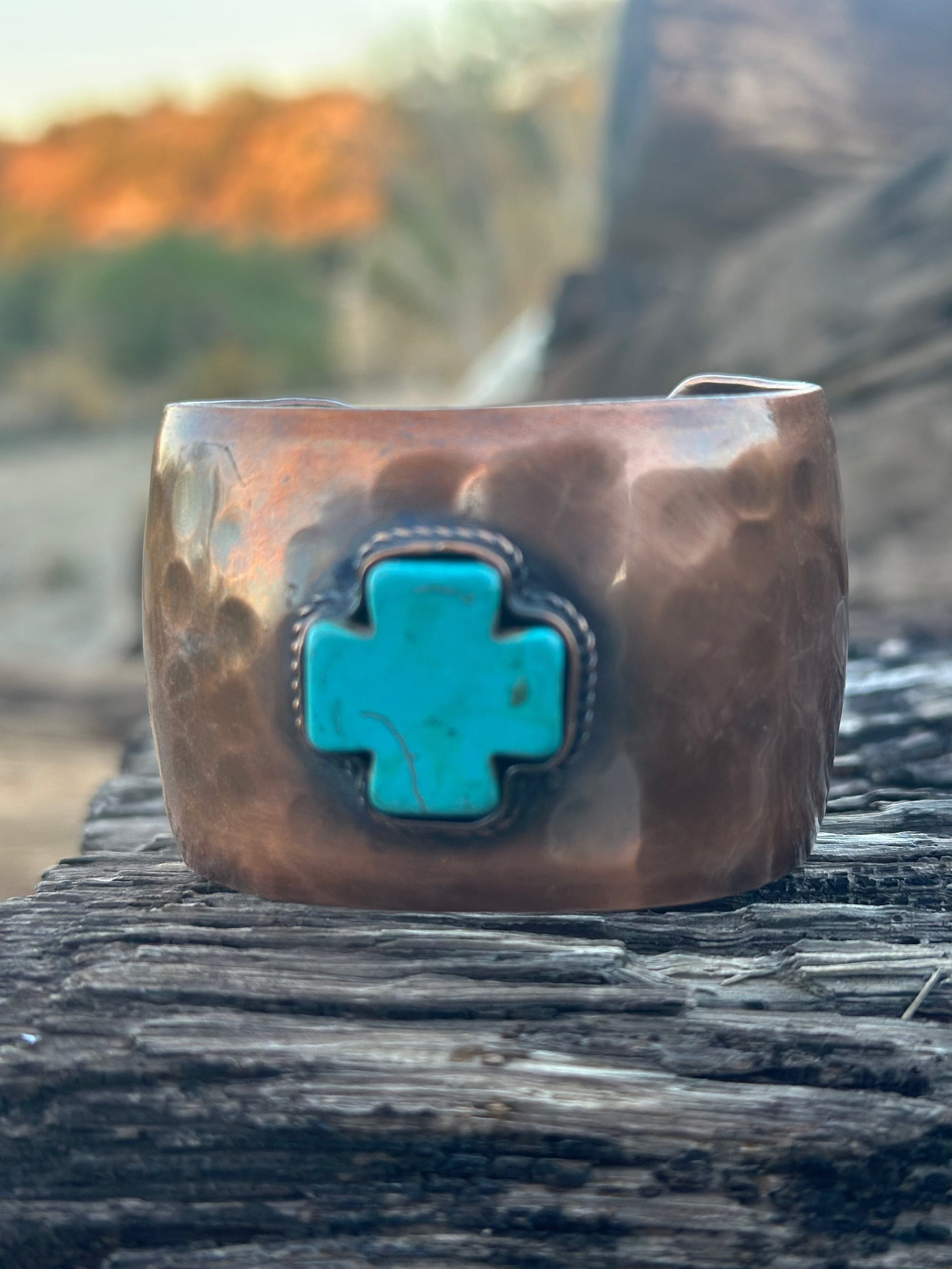 The Copper Turquoise Cross Statement Cuff Bracelet
