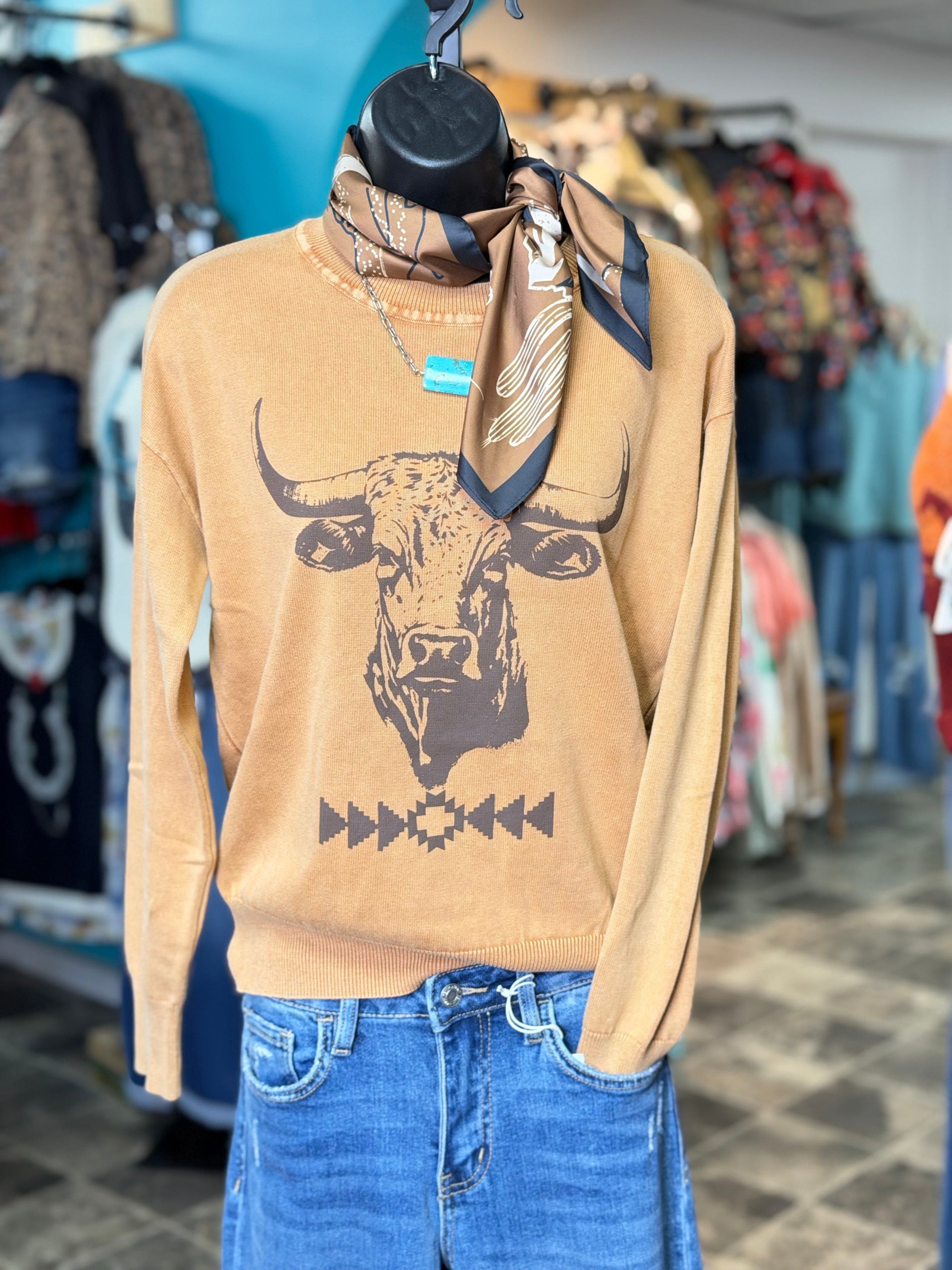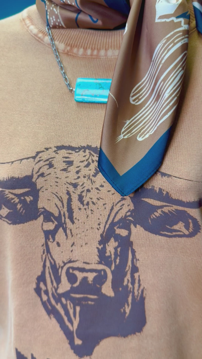 This super soft knit is as cozy as it is cute, featuring the most adorable Hereford that gives off all the Western charm. Easy to wear, comfy enough for all-day, and totally cowgirl approved. Pair it with denim and boots for a laid-back Western look you’ll reach for again and again!