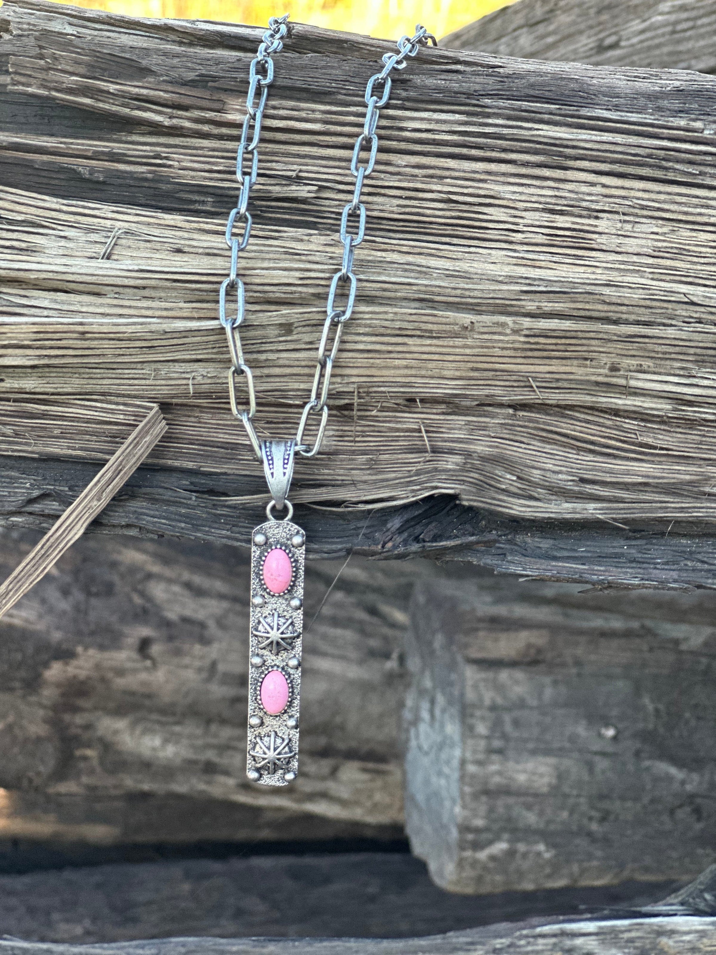 This Pretty pink star bar on a paperclip chain is the perfect accent - cute by itself or layered! We love this one for fall! measures 20”