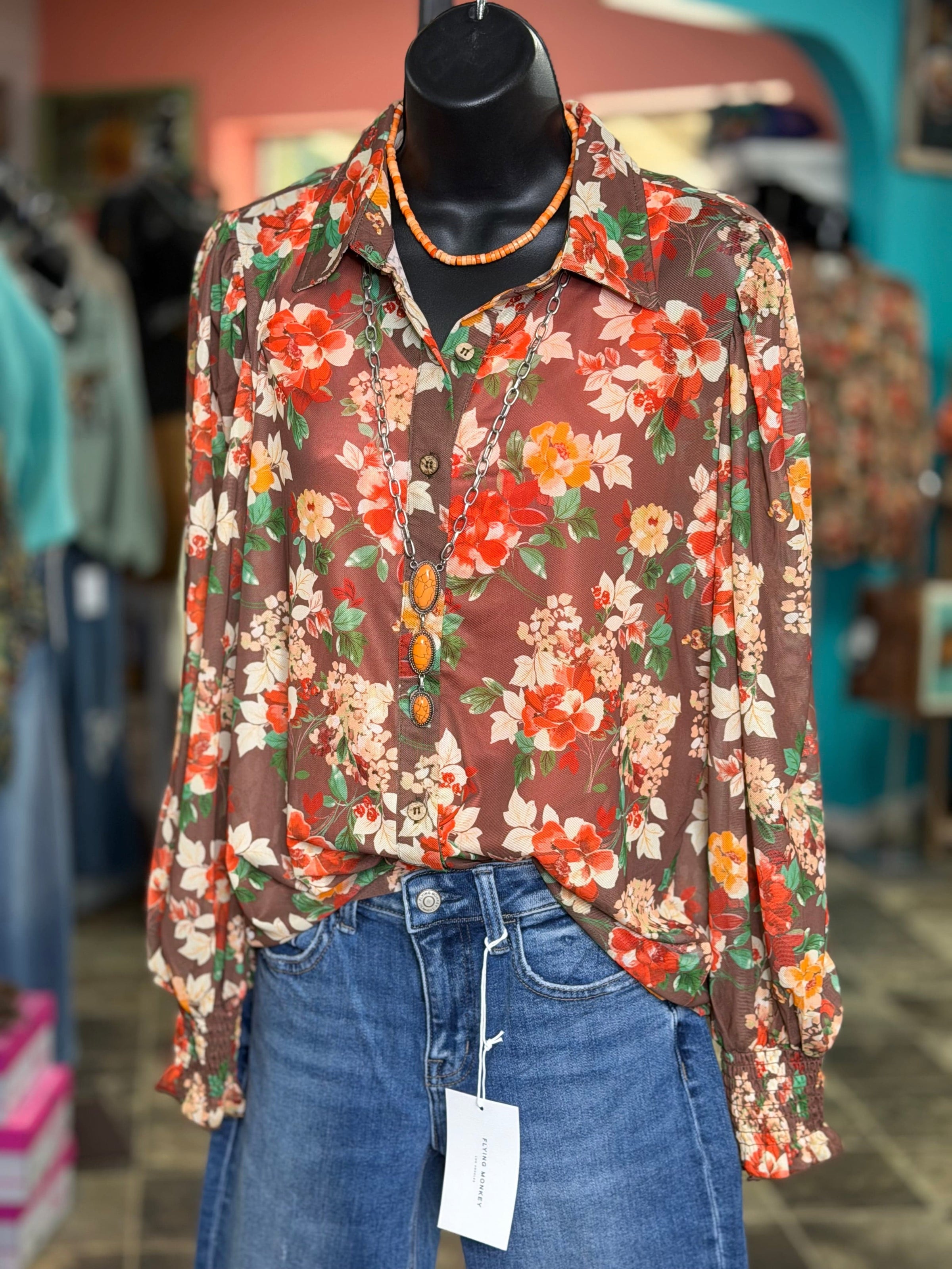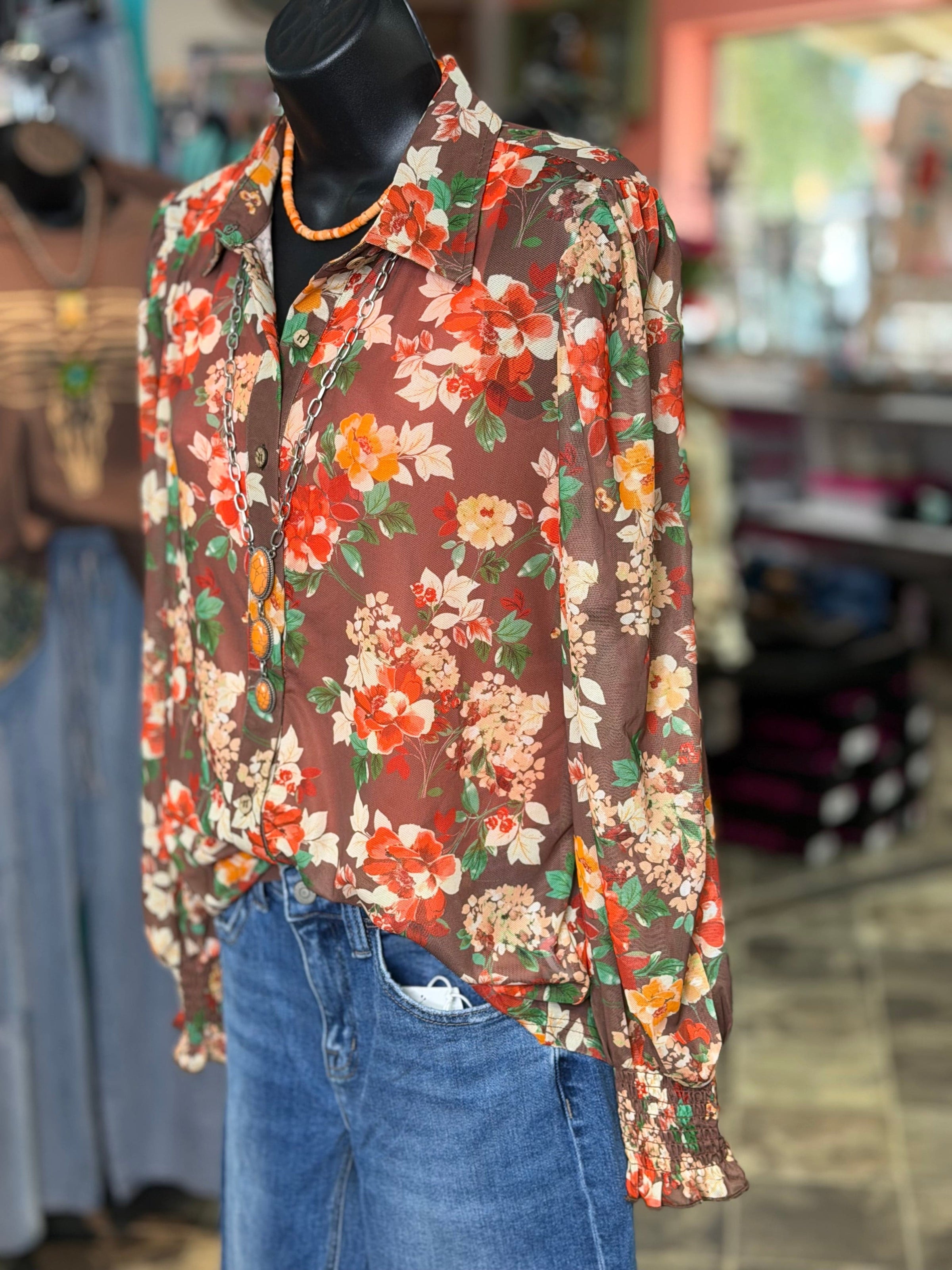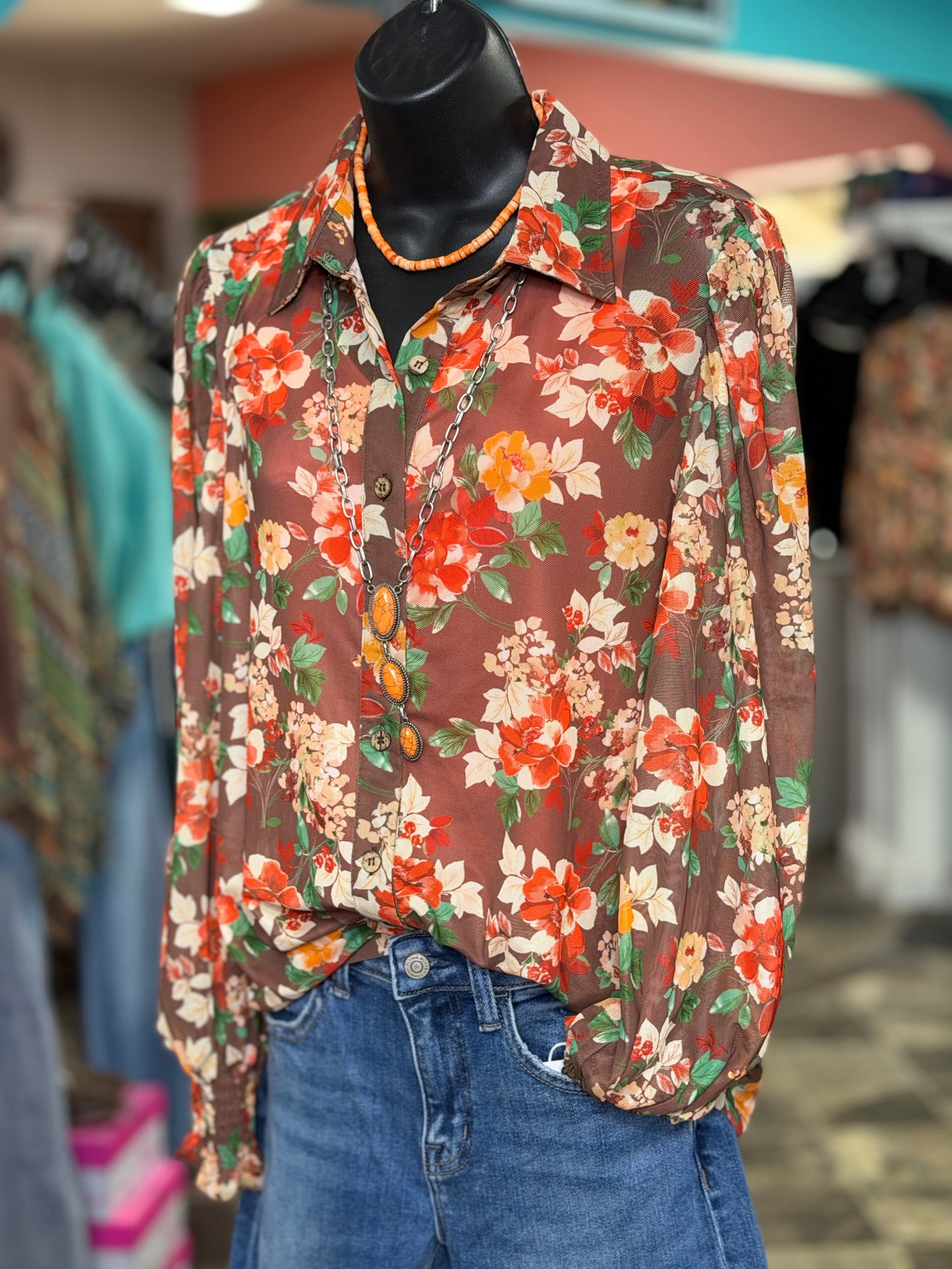 The Pretty Floral Button Chiffon Up Top