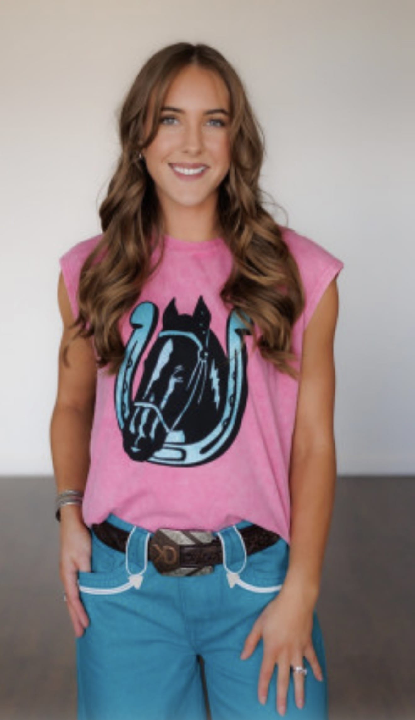 Giddy up and let your wardrobe trot into spring with The Punchy In Pink Sleeveless Horse Tee! This fab piece, splashed with pink and turquoise, radiates cowgirl charm and good vibes. Perfect for those who want to lasso in some compliments—just watch out for the stampede of admirers!