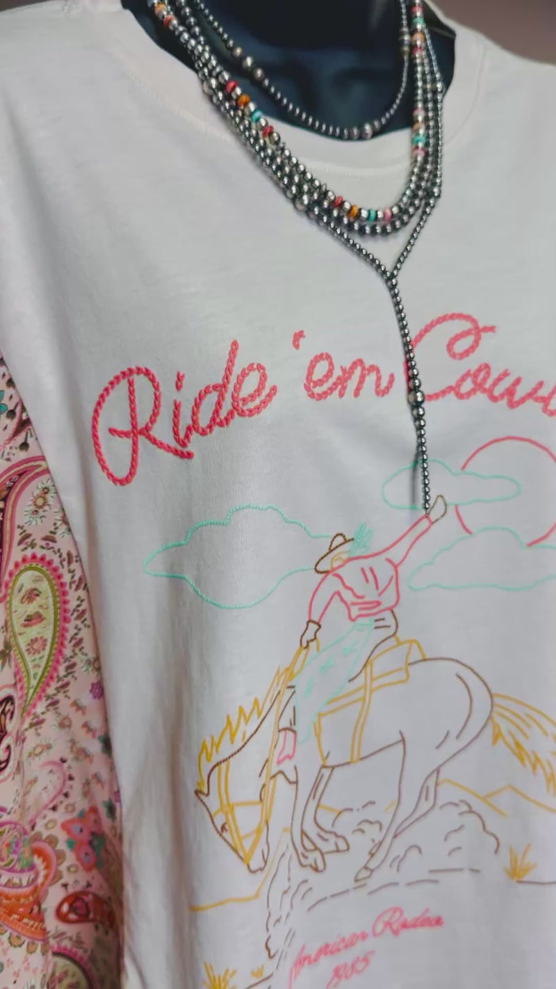 Get ready to stand out in the best fall fashion with the this Retro Flutter Sleeve Paisley Poncho Top!  This unique top features a gorgeous paisley sleeve paired with a western tee shirt body, perfect for city or country wear. The fun graphic adds a fun pop of Southwest style, making this top a must-have addition to your wardrobe!