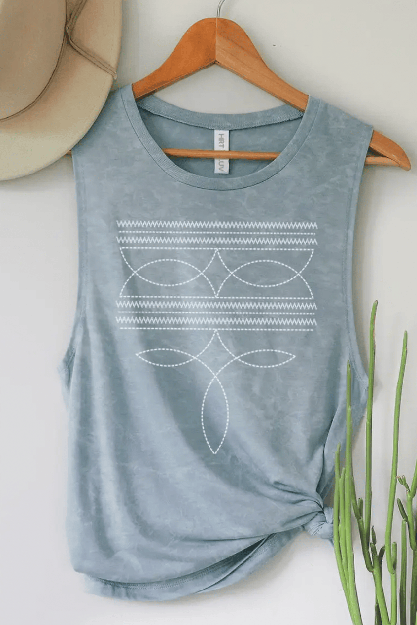Y'all better wrangle this bootstitch Tank before it's gone. With a touch of western and a hint of Southwest style, this tank is perfect for the summer. Don't miss your chance to snag this sold-out style at our last show.