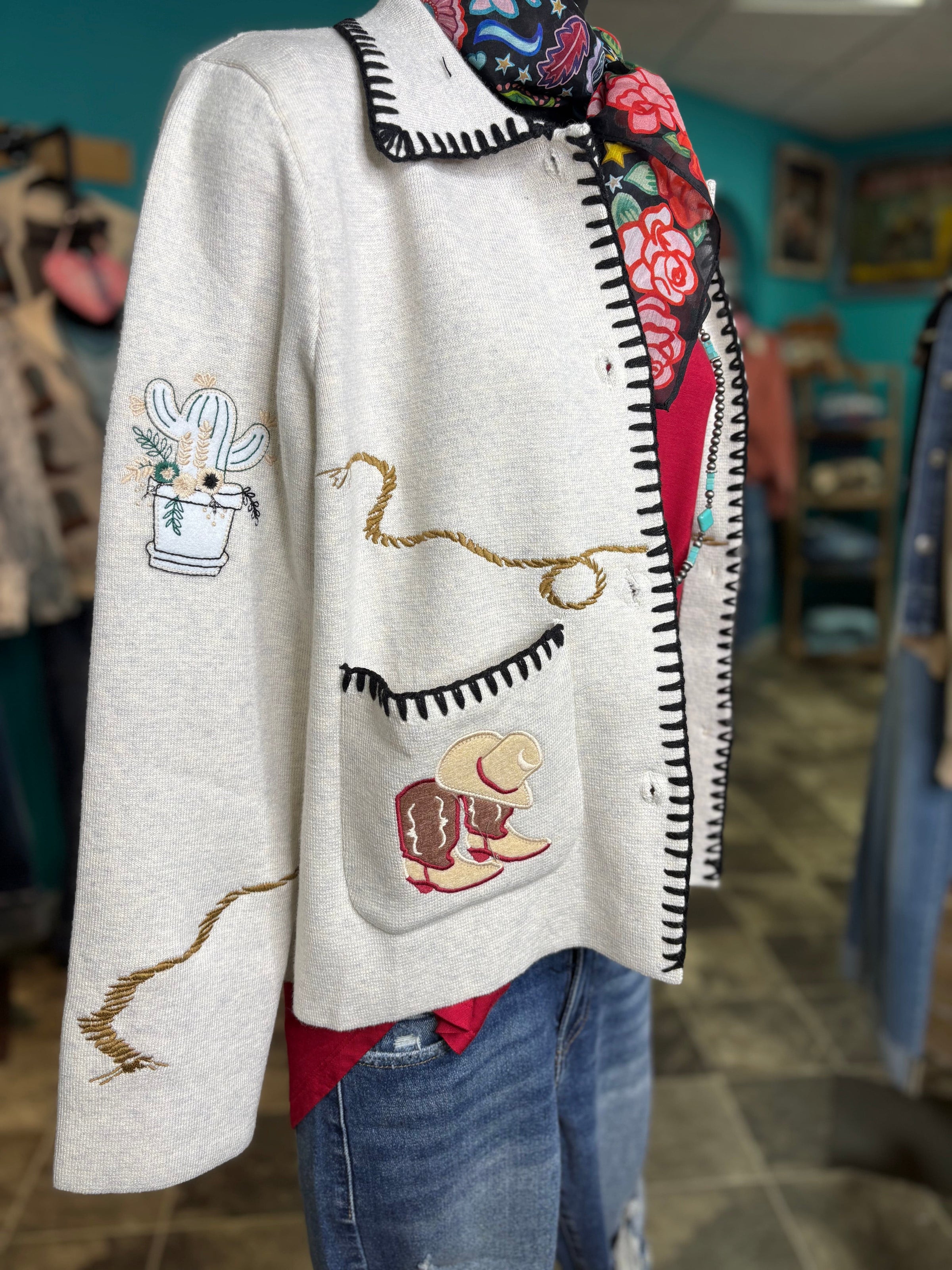 The Western Ways Embroidered Whipstitch Cardigan Sweater