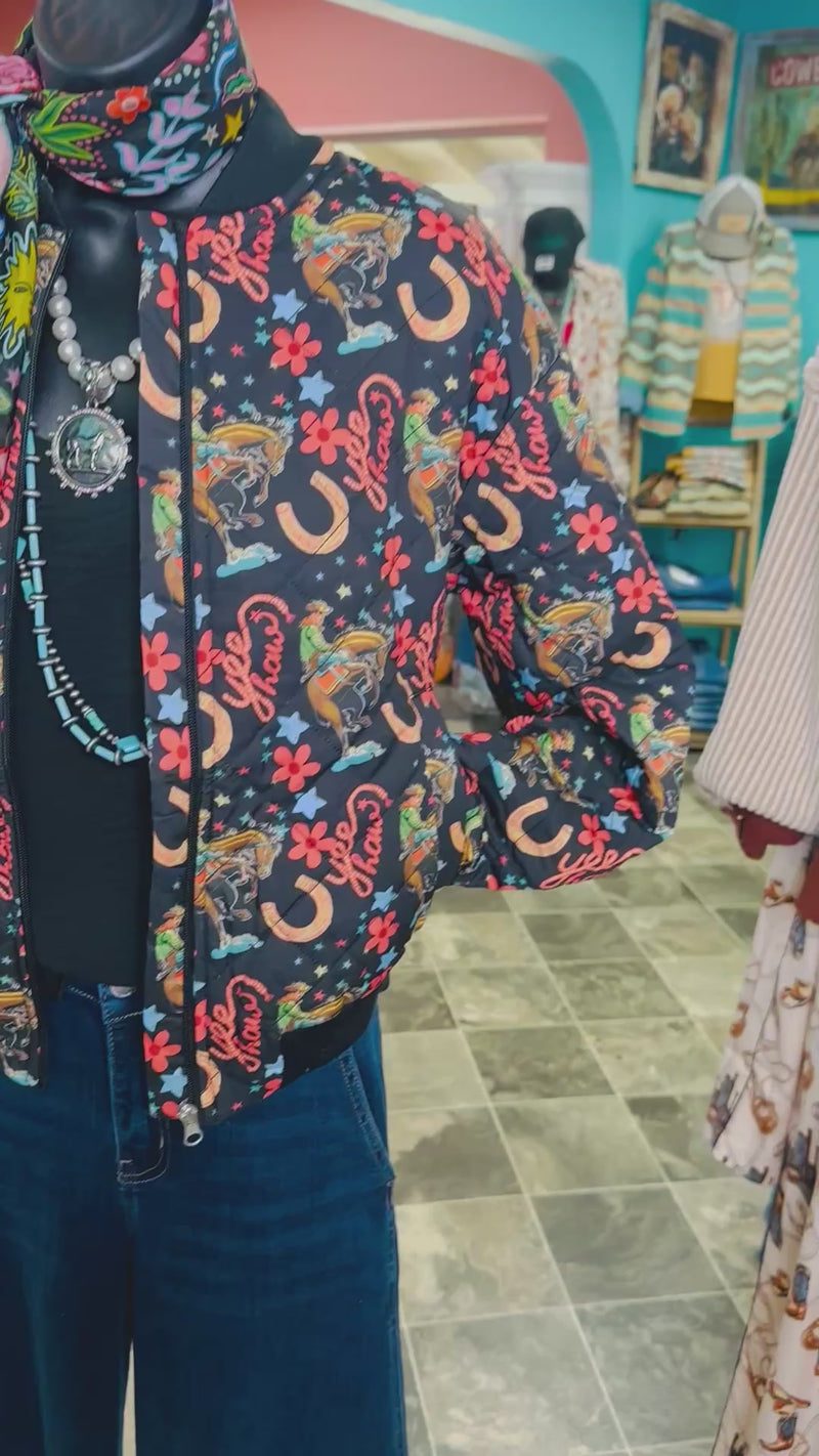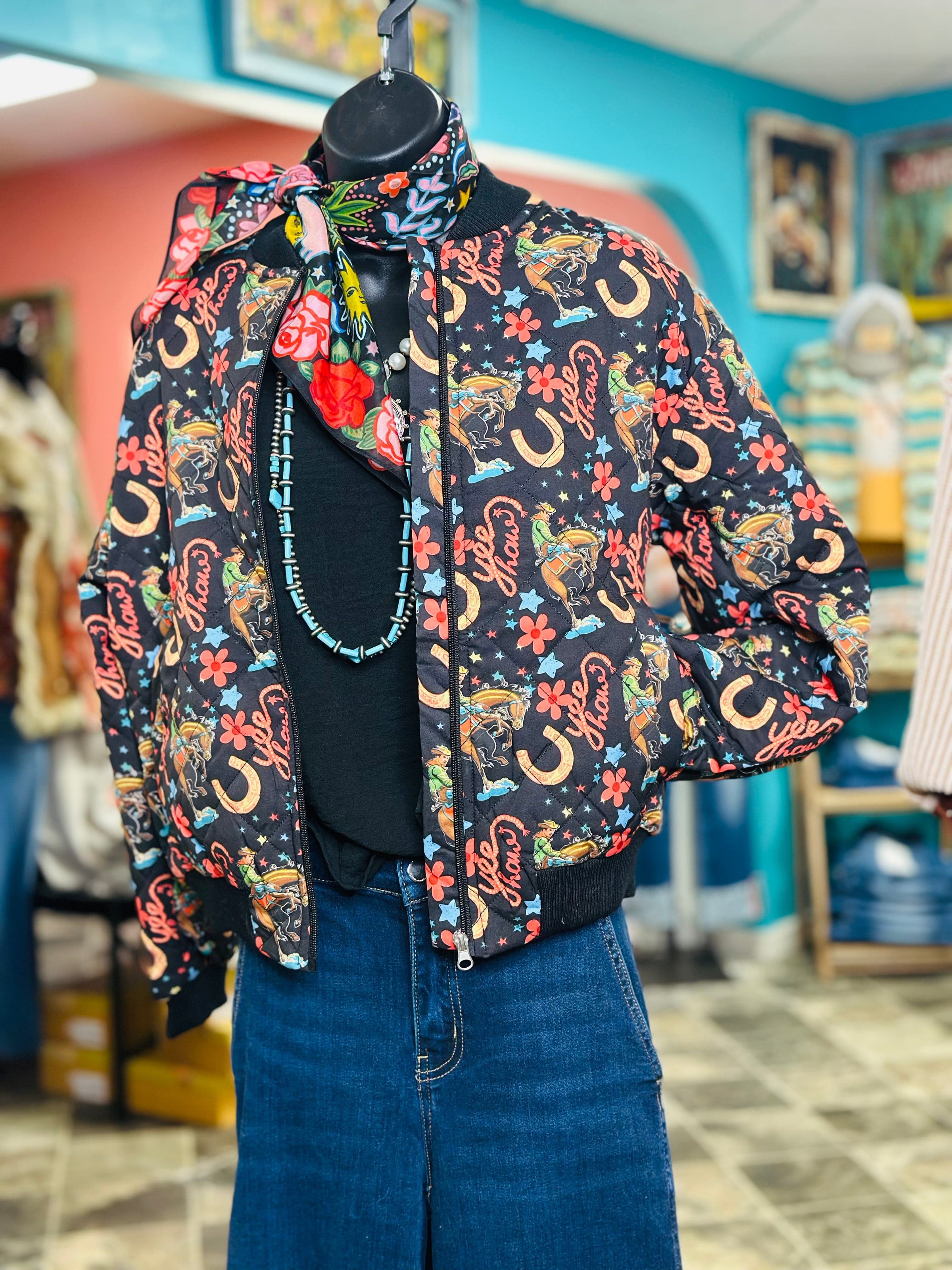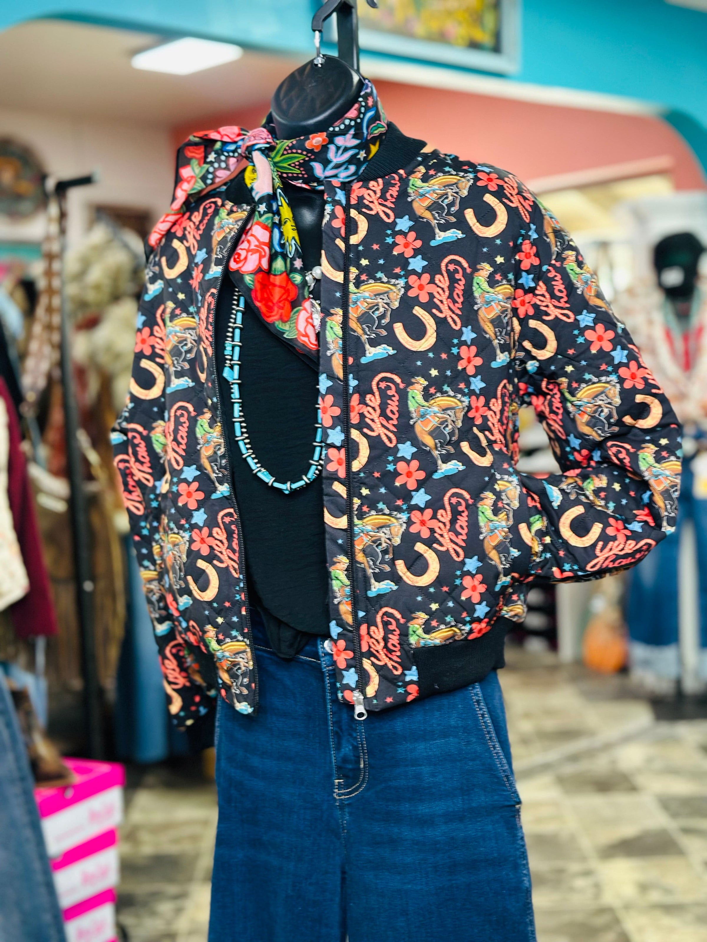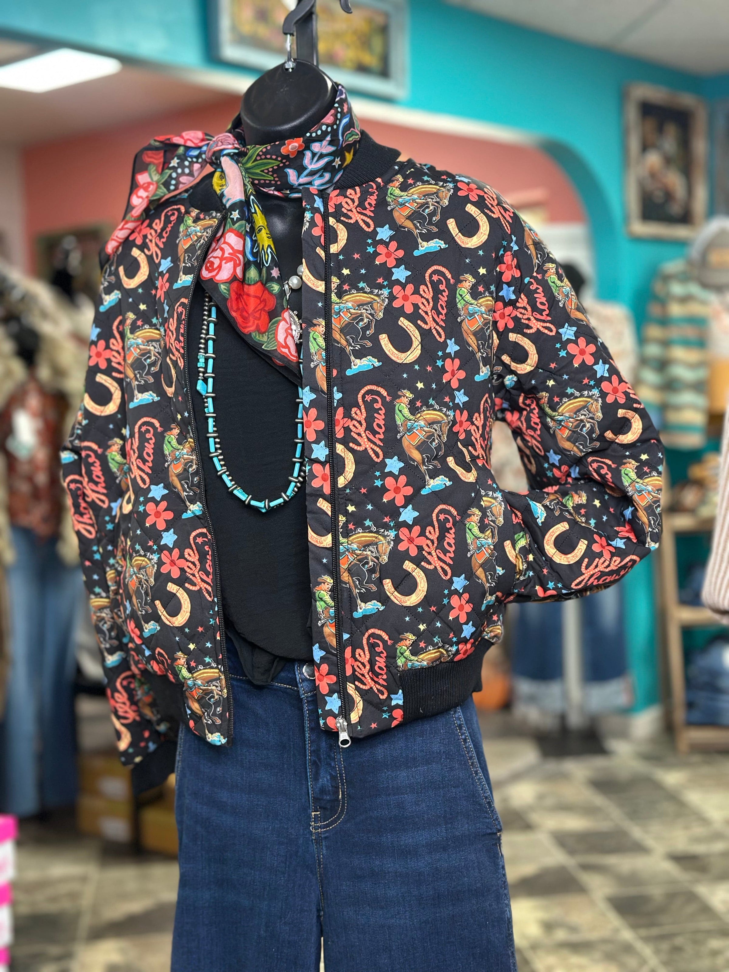 The YeeHaw Cowboys Quilted Bomber Jacket