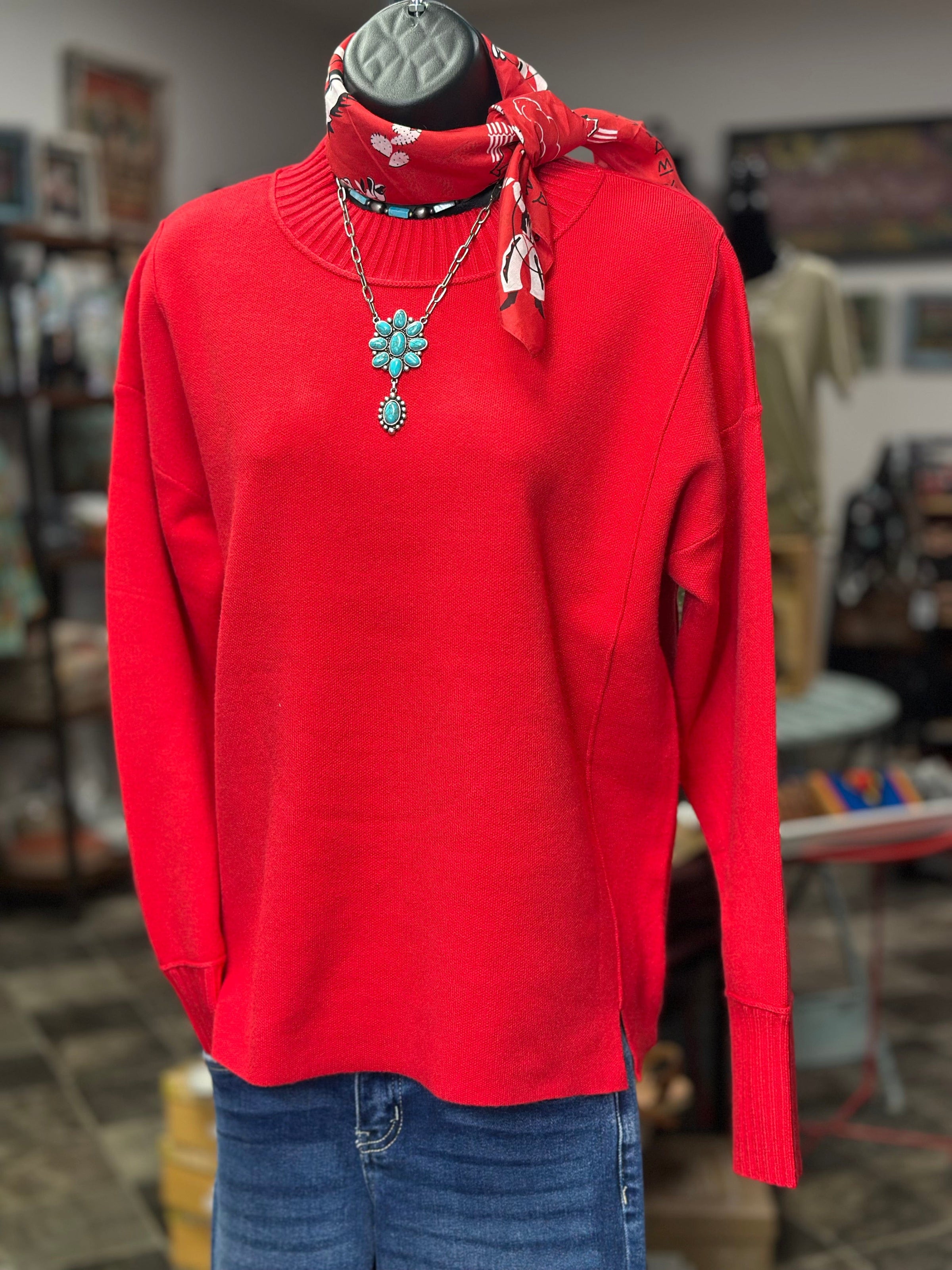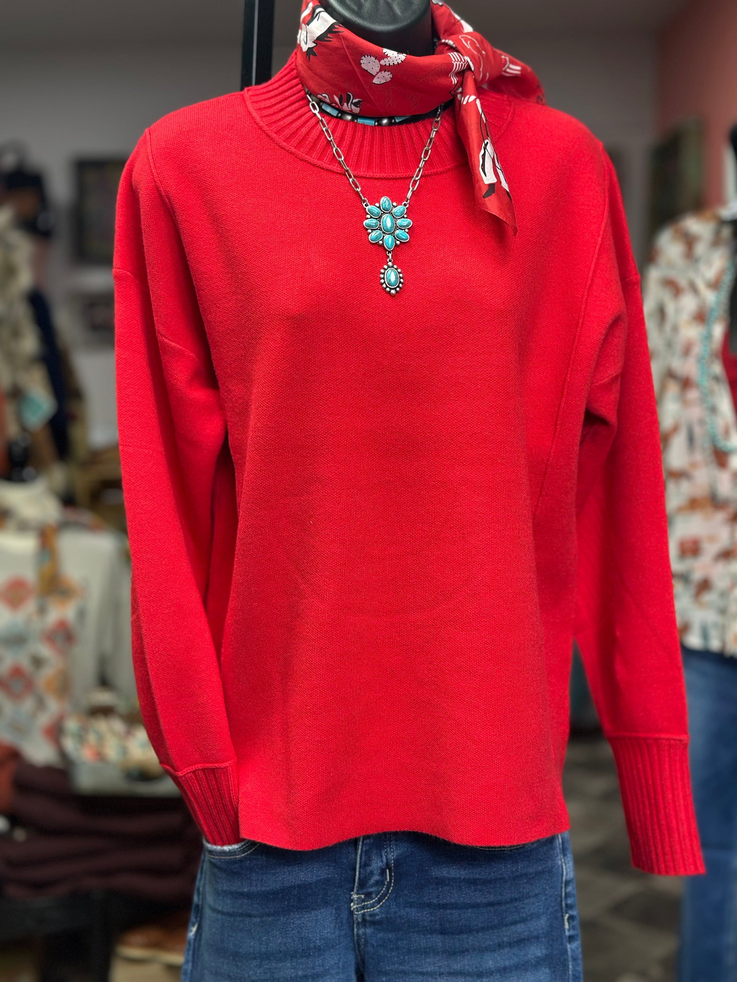 Get cozy with the Holiday Red Miles City Sweater. The seam detail adds a touch of style to this roomy fitting, red Christmas sweater. Perfect for snuggling up with a cup of cocoa, this sweater will keep you warm and stylish all season long.