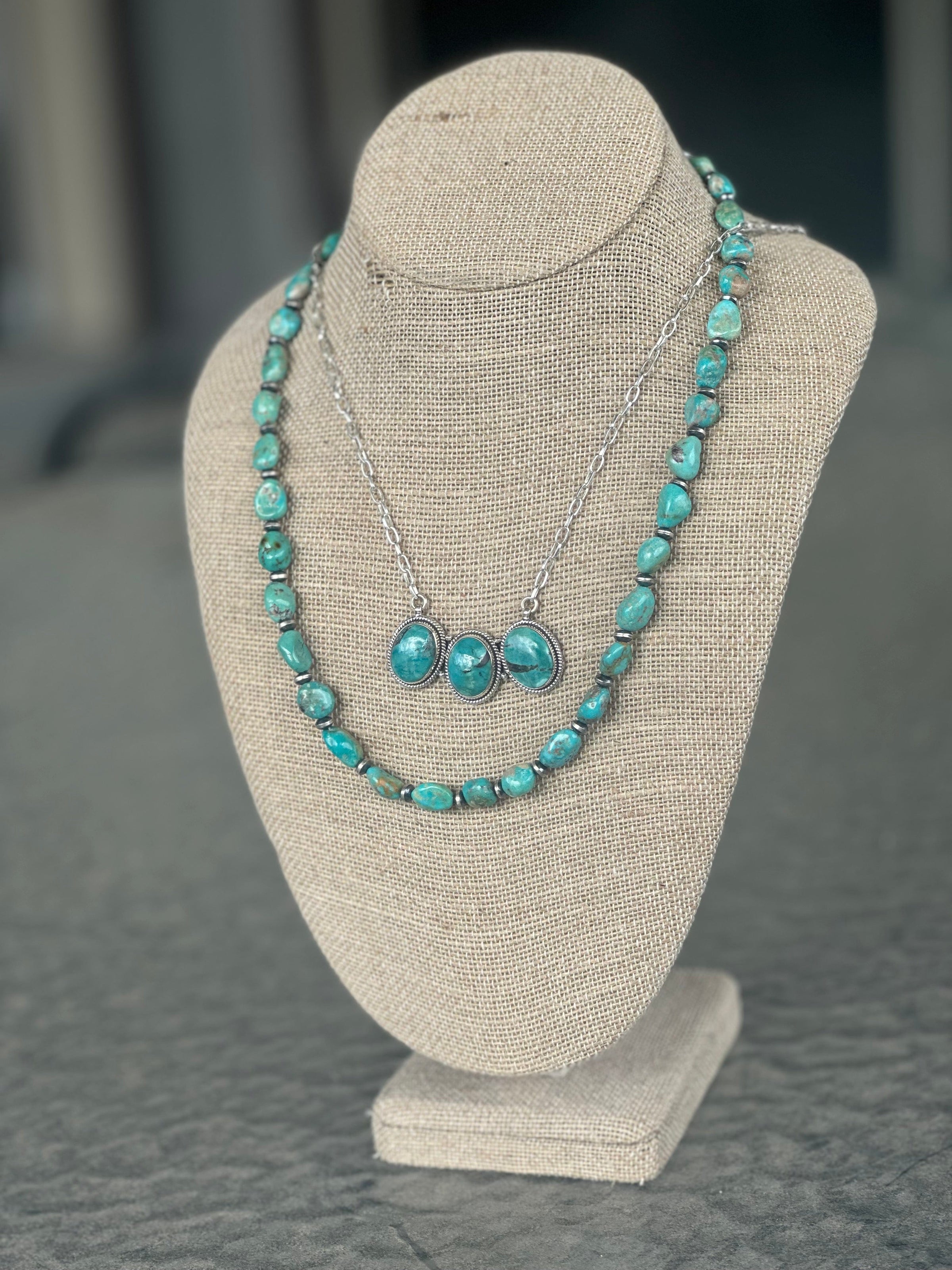 This triple turquoise beauty is Southwest style at its best — bold, classic, and full of charm. With three gorgeous turquoise stones on an 18” sterling silver chain, it’s the perfect mix of rodeo glam and everyday sparkle. Snag it quick — we only have one, and it’s a gift she (or you 😉) will love for years to come! 💙