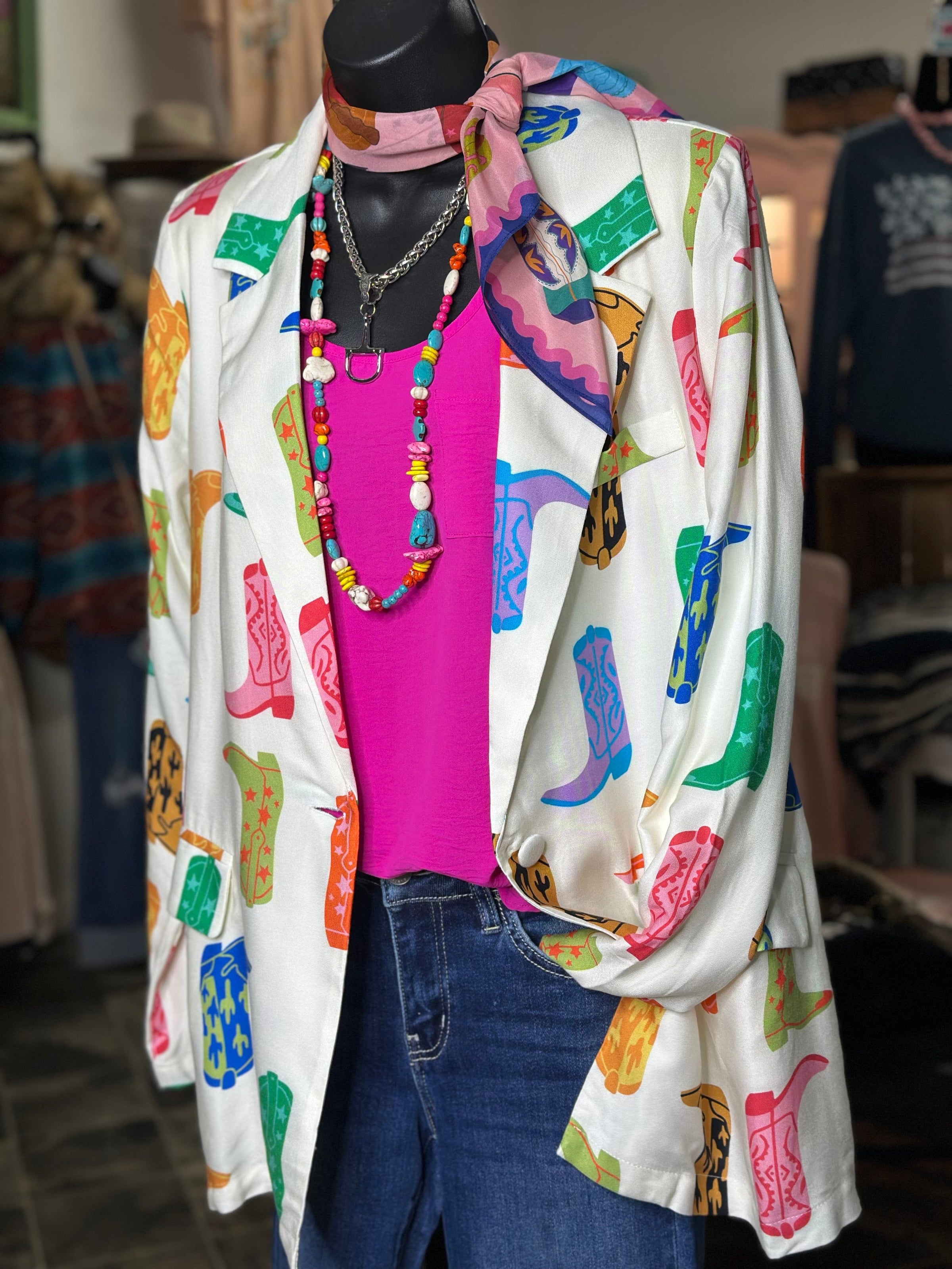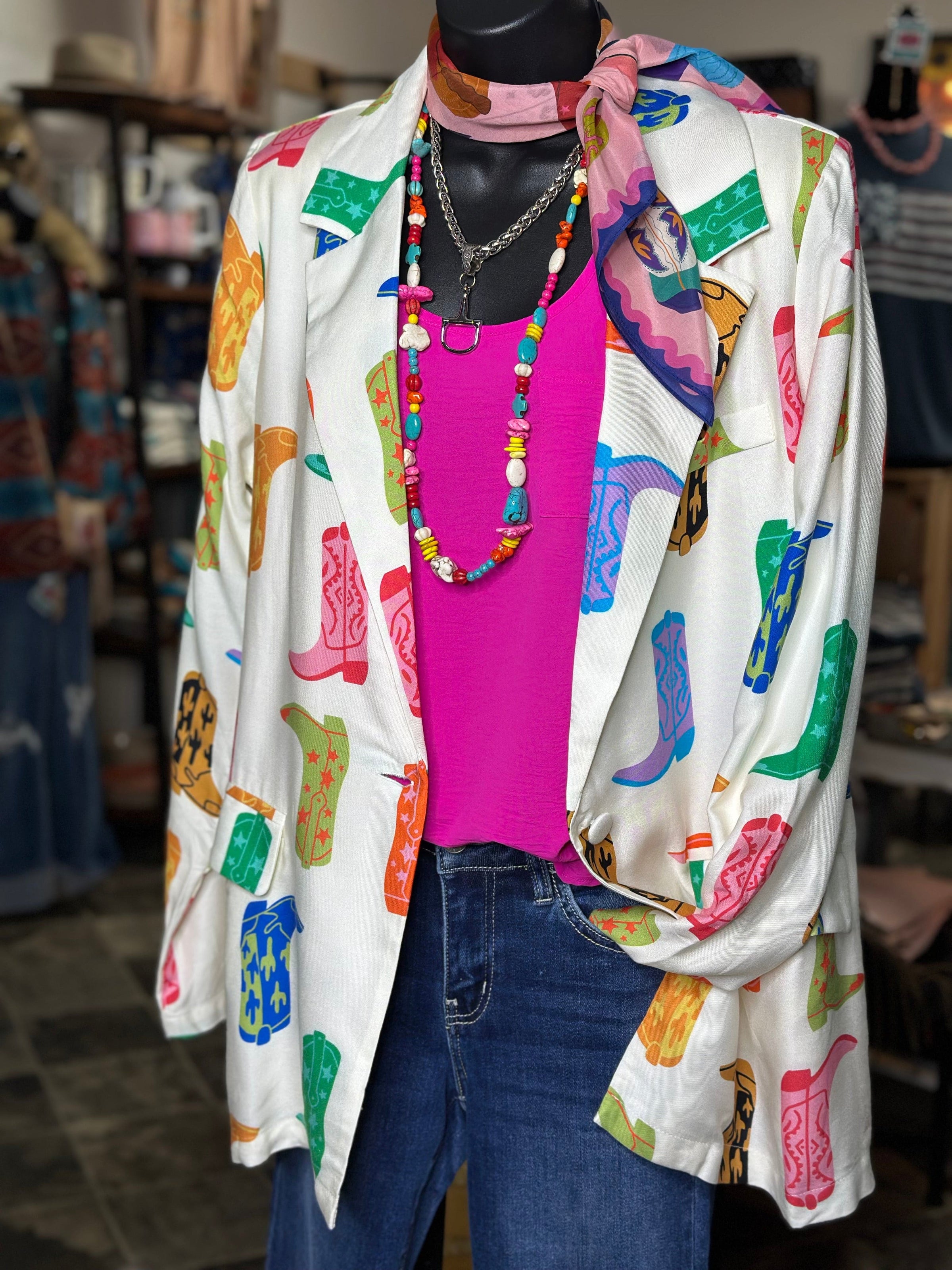 - Polished blazer with a fun Western twist