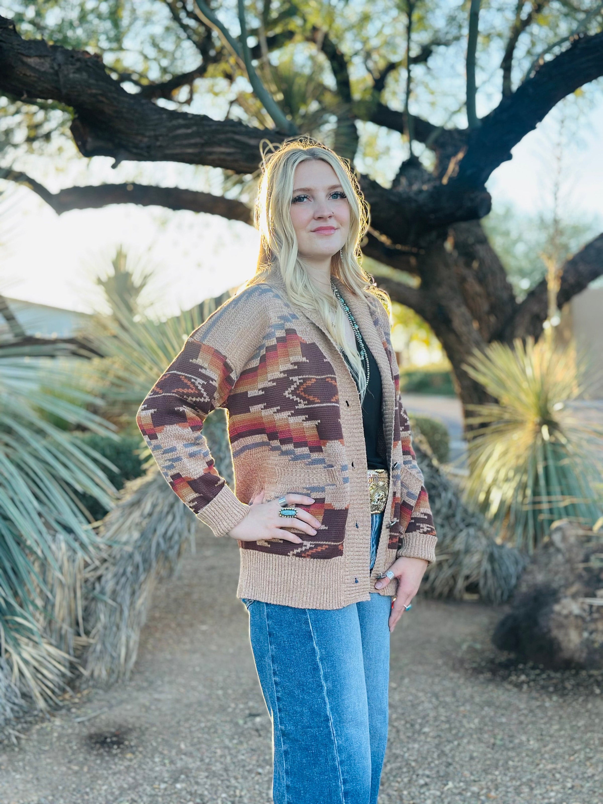 Pair it with your favorite denim and boots for an effortlessly chic cowgirl look, or layer it over a graphic tee for casual rodeo-ready style. Whether you’re heading to NFR, a weekend in Santa Fe, or just want a statement sweater that turns heads, this one’s a must-have addition to your Western wardrobe!