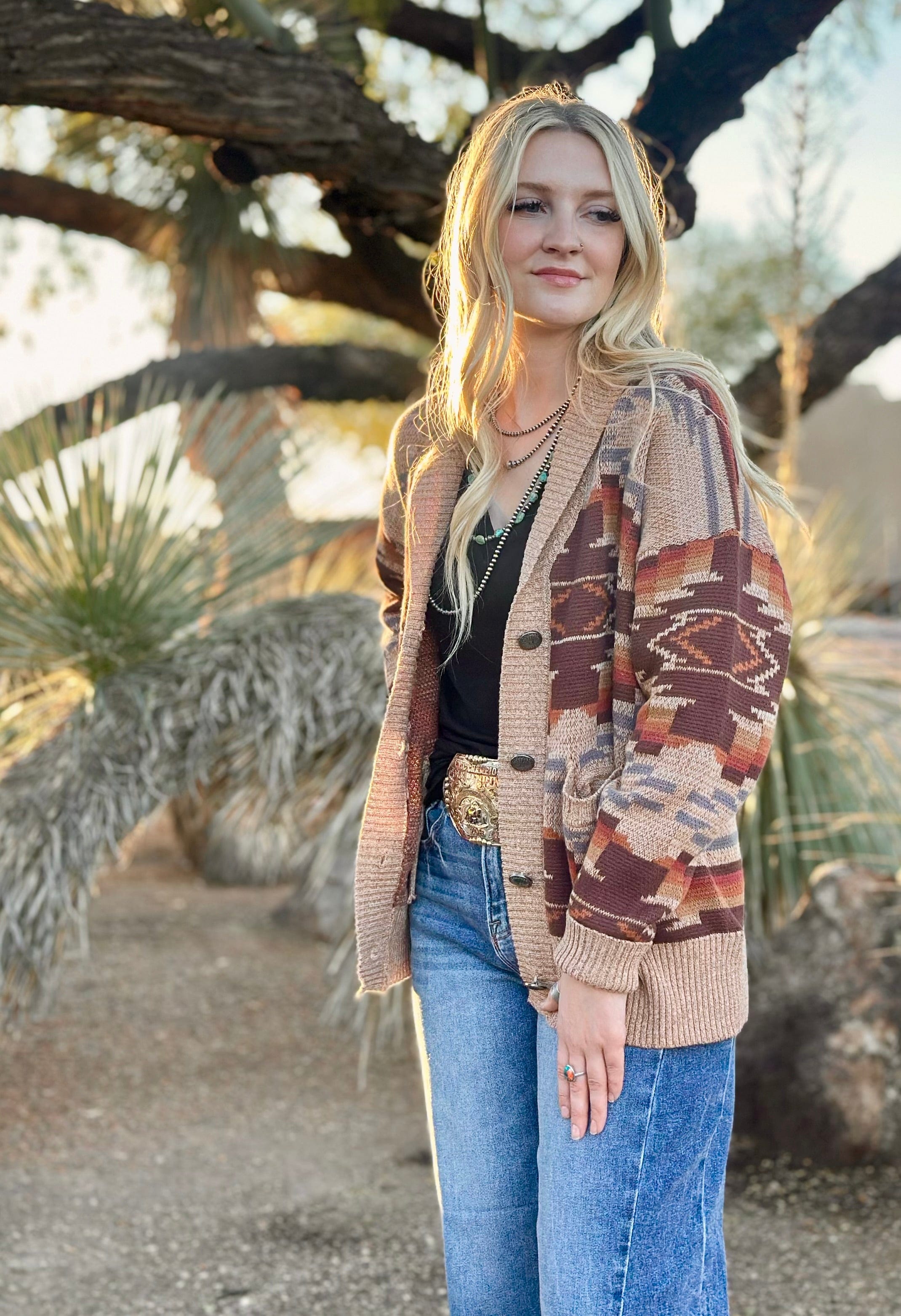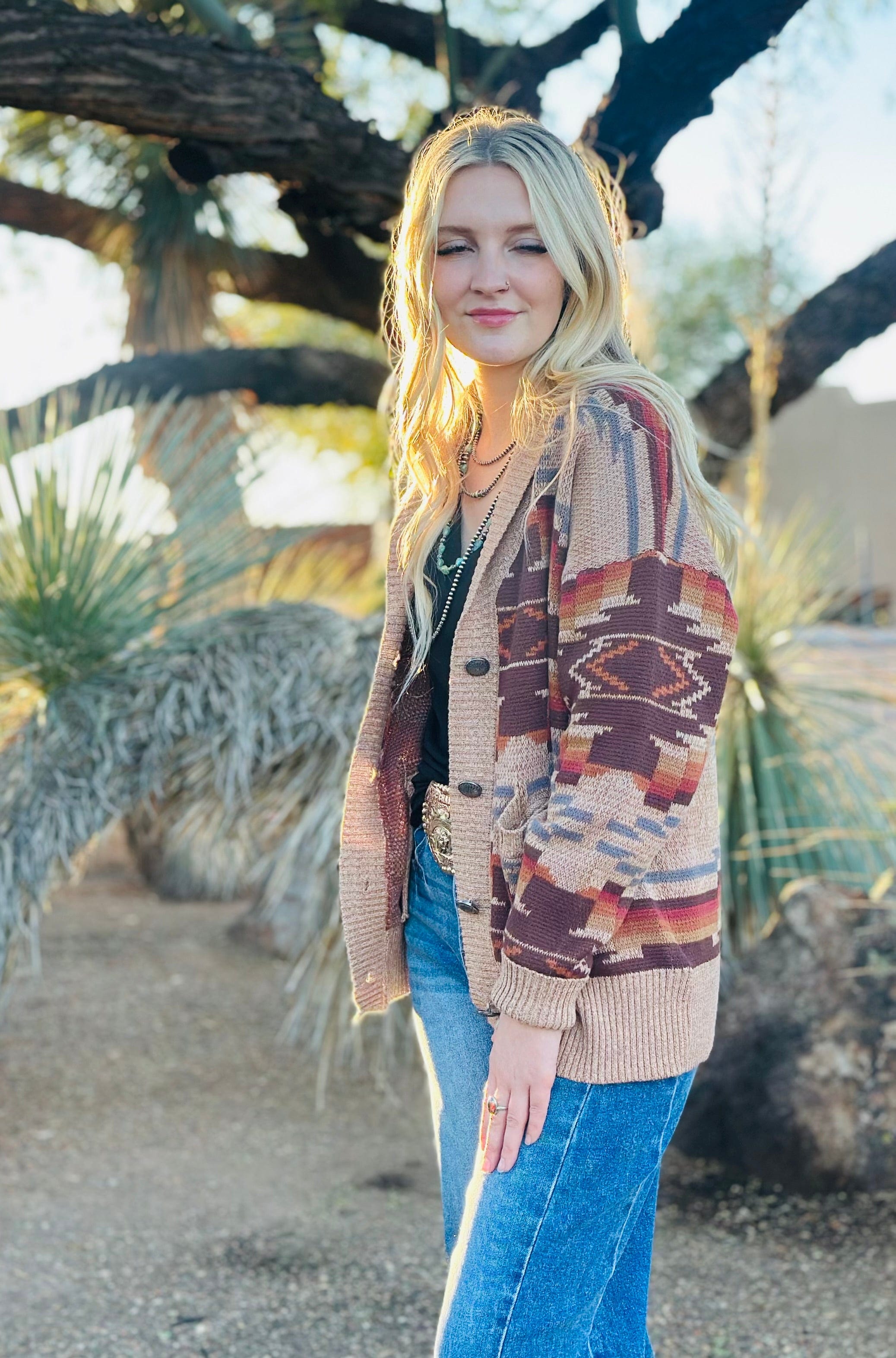 Bring a touch of timeless Western charm to your wardrobe with this standout sweater that’s as cozy as it is stylish. We love the super soft feel and quality craftsmanship that make it a go-to favorite season after season. Inspired by classic Pendleton patterns, it features a beautiful western-inspired Aztec pattern in rich tones that instantly capture that Southwest spirit.