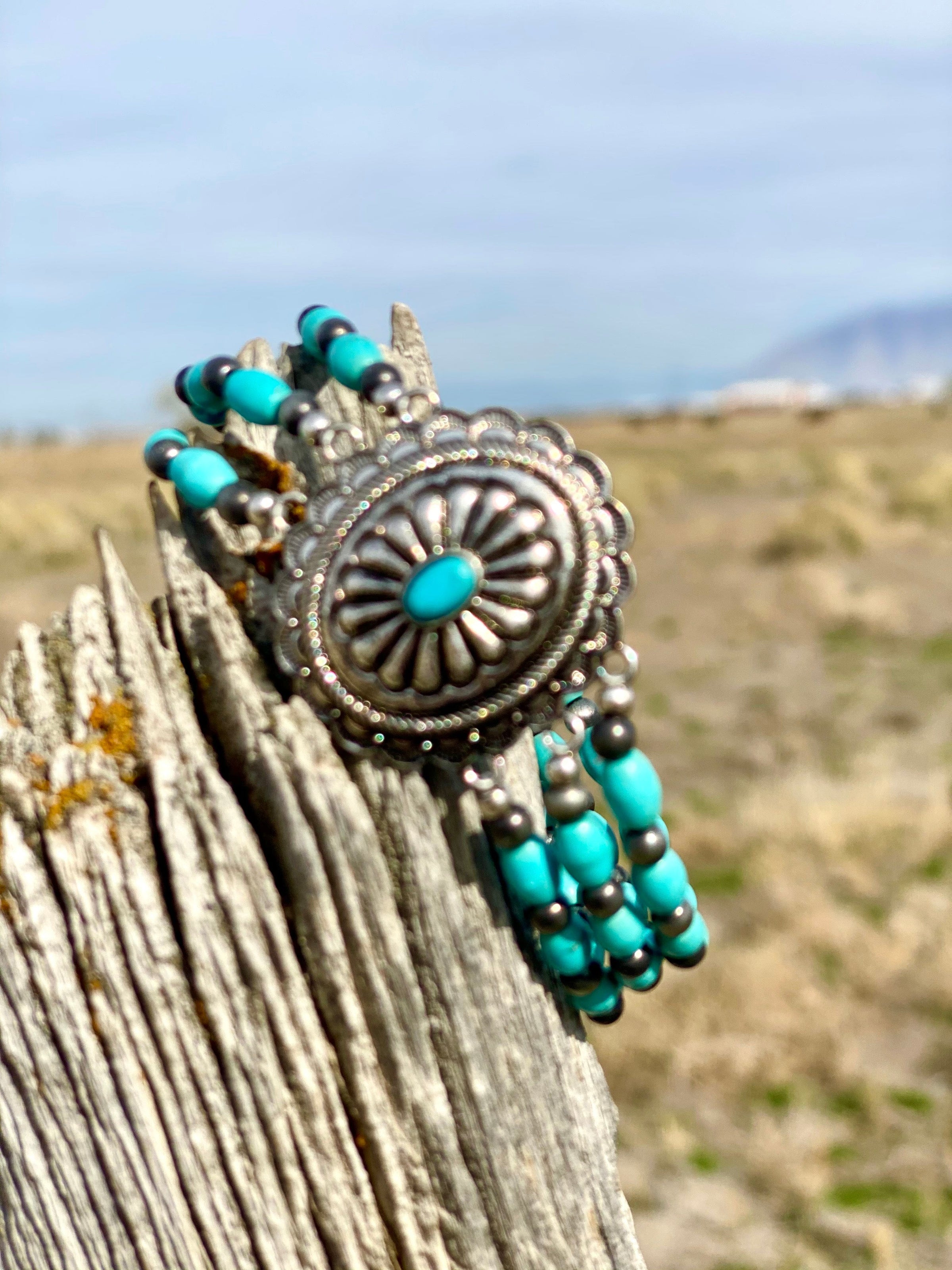 Cute Concho bracelet with bead accents! Great stacked with other bracelets or alone