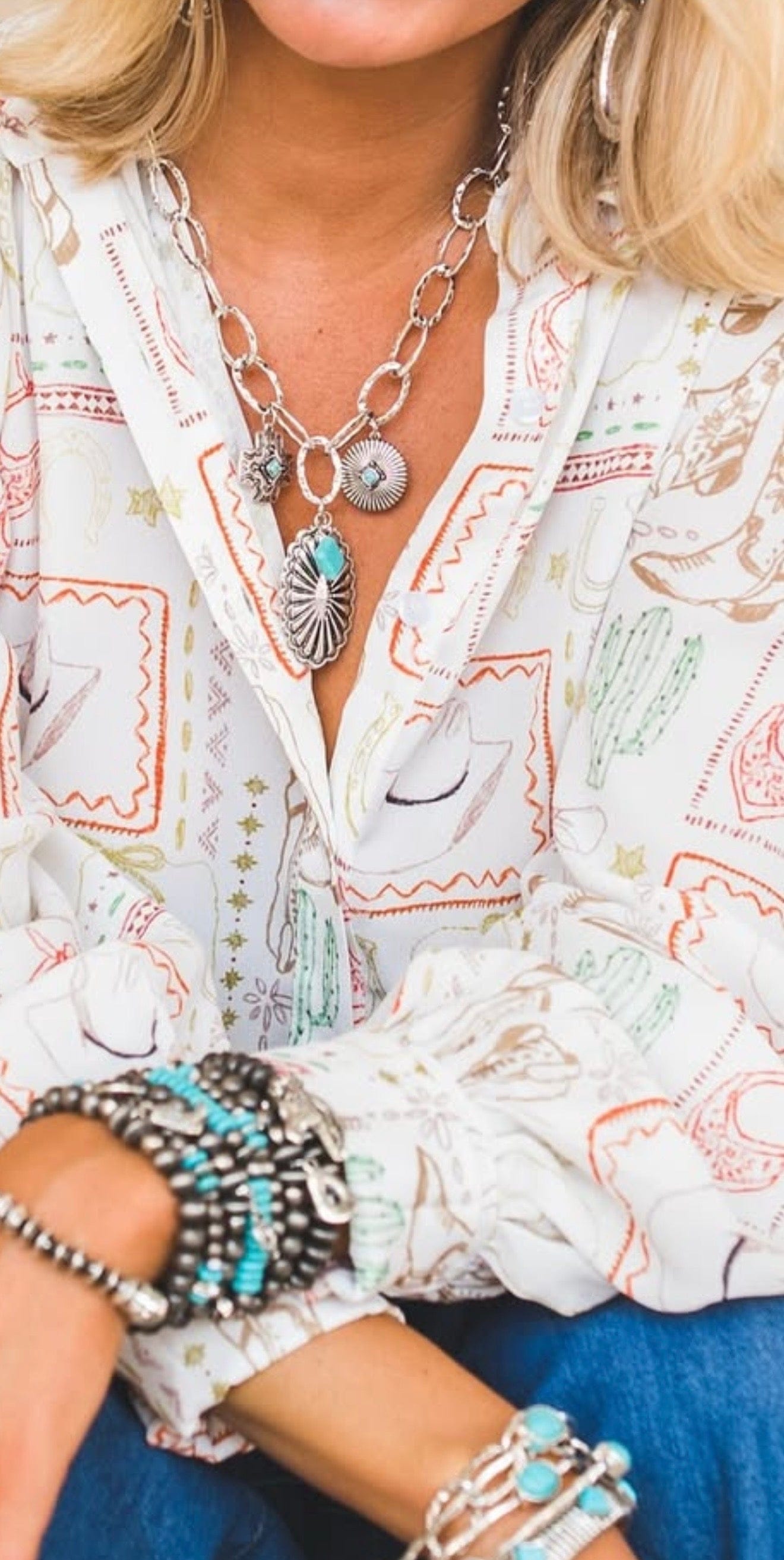 Playful yet stylish, it’s easy to dress up or down—perfect for pairing with graphic tees, flowy tops, or your favorite denim. Whether you’re headed to the arena or out on the town, this quirky necklace lets your Western style shine!