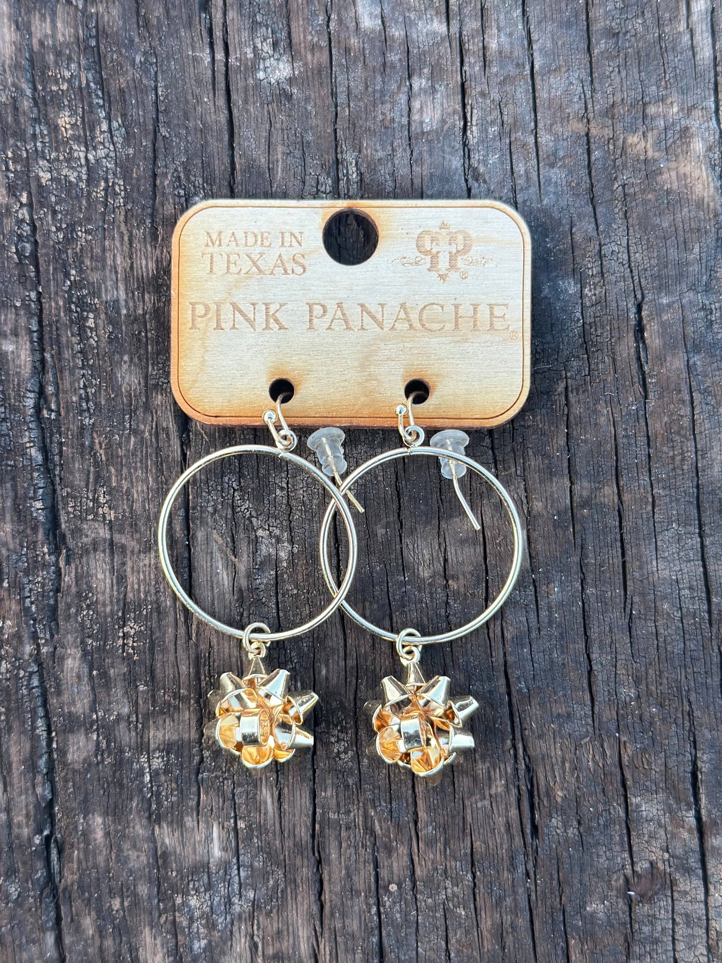 The Pink Panache Holiday Sparkly Gold Bow Earrings