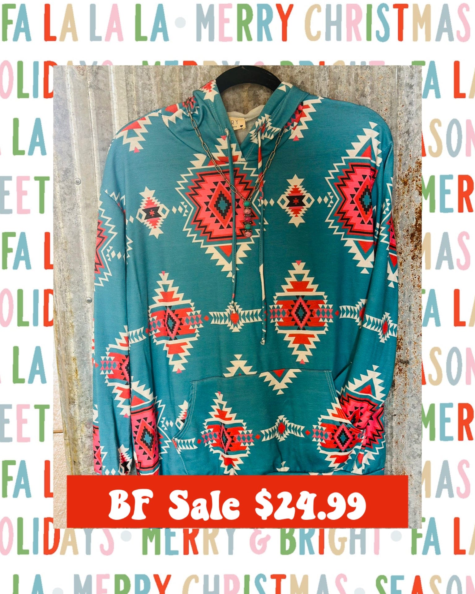 This has the prettiest colors, with a Southwest feel, and a super soft, great fitting top with a roomy, easy to wear fit, in a lightweight fabric!! It will be the most loved piece in your collection! We guarantee it ;)