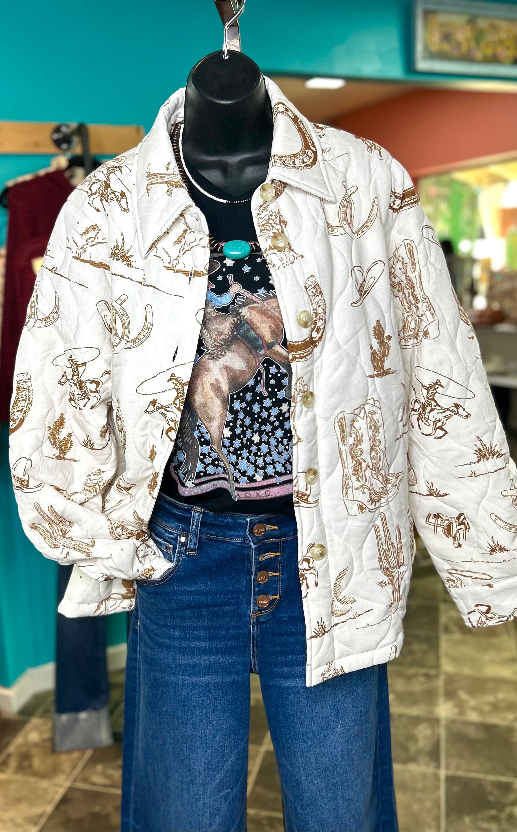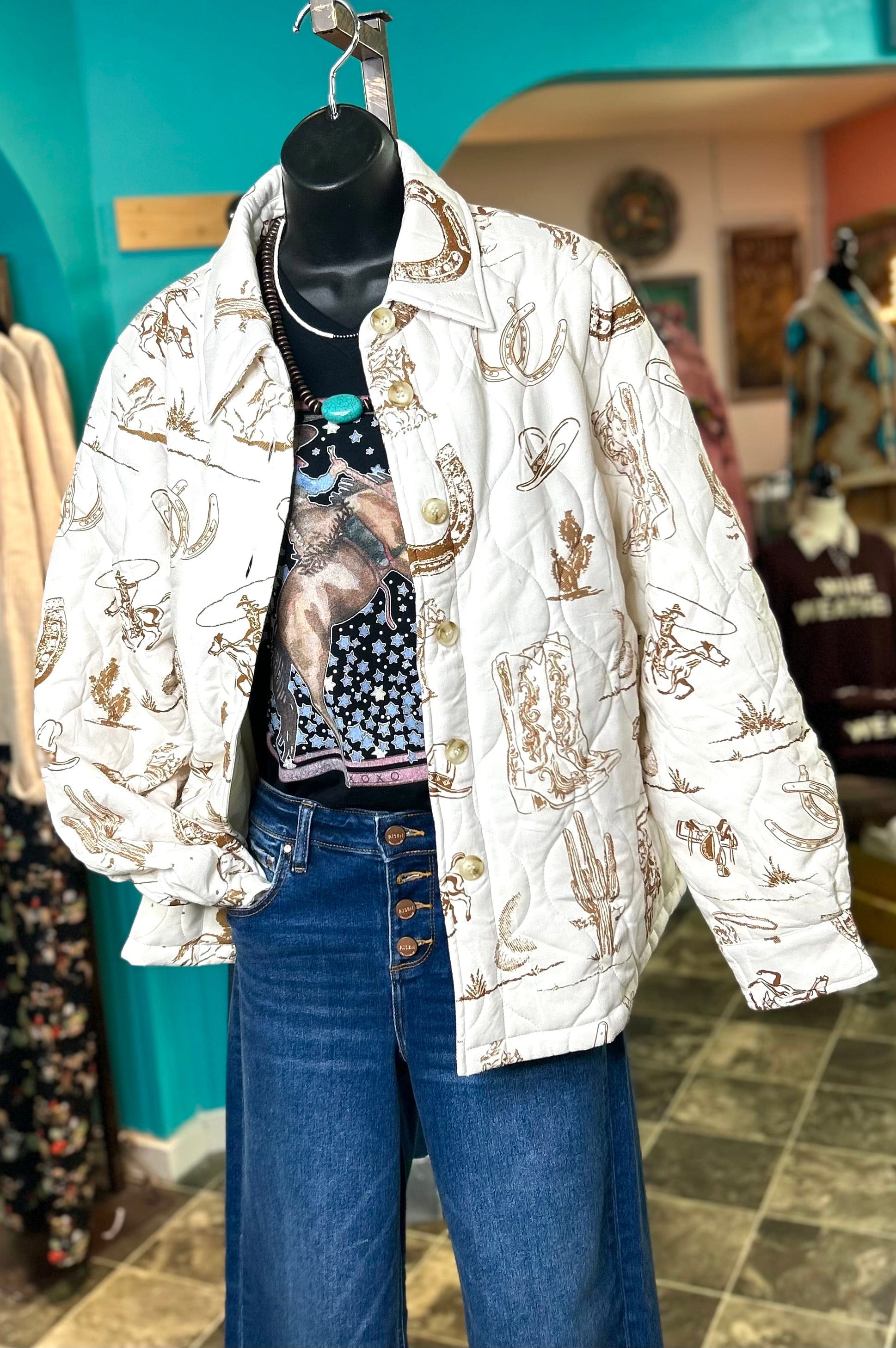 This is one of our fav market buys and it’s flying off the shelves! Cute western pattern on a cozy Shacket for some style, and a roomy fit like most Shackets! We suggest sizing down in this one! Don’t miss out on the cutest jacket yet - this super soft Shacket will be perfect for those cooler days and evening! Pairs perfectly with our Graphic Tees too!