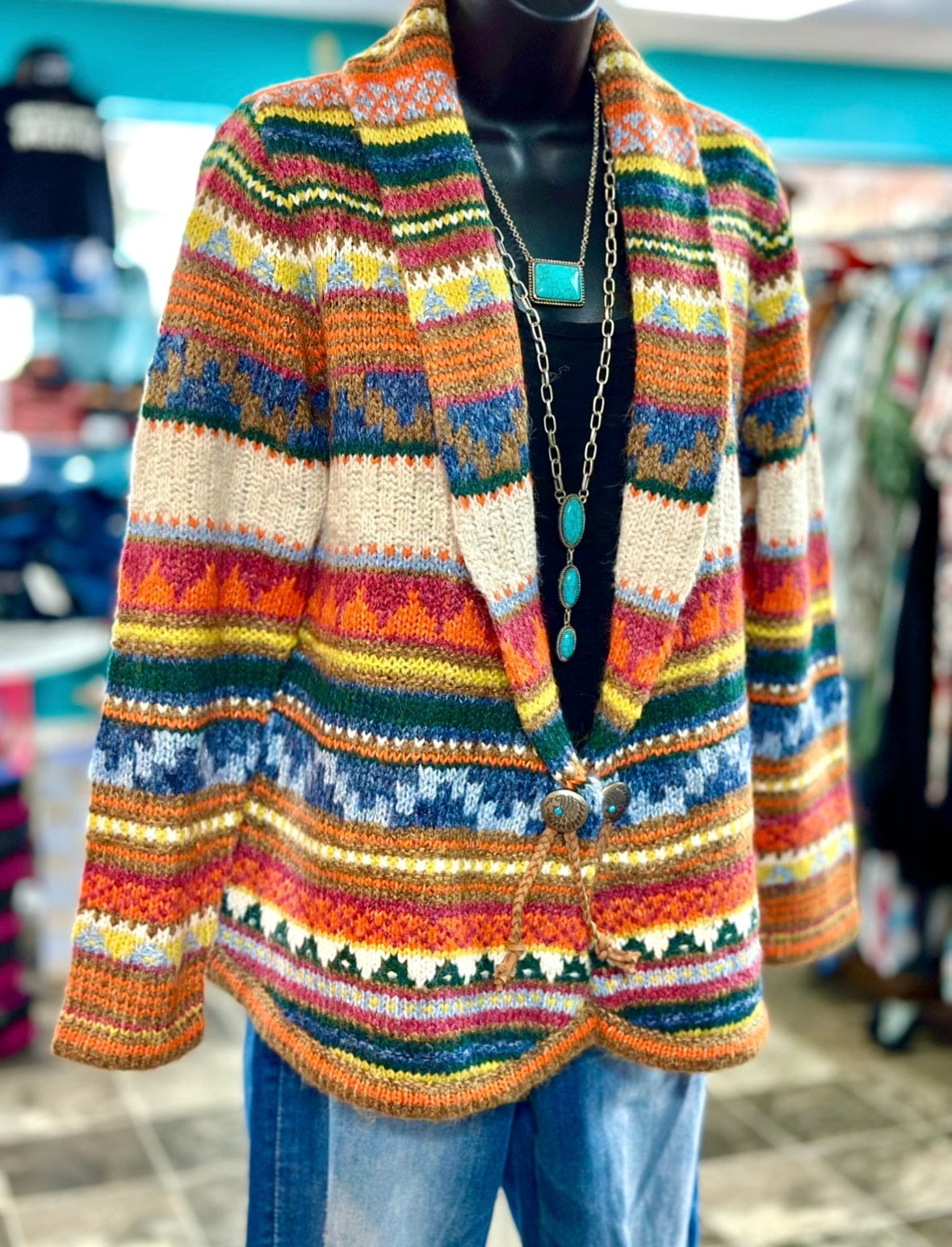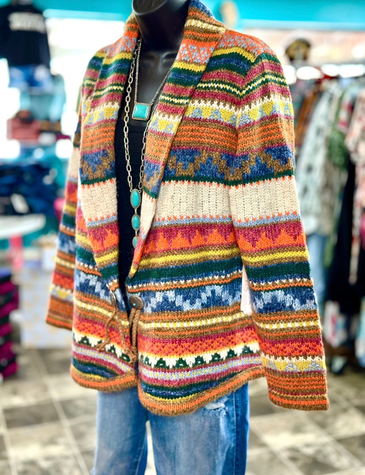 Pair it with your favorite denim and boots for an effortlessly chic cowgirl look, or layer it over a graphic tee for casual rodeo-ready style. Whether you’re heading to NFR, a weekend in Santa Fe, or just want a statement sweater that turns heads, this one’s a must-have addition to your Western wardrobe!