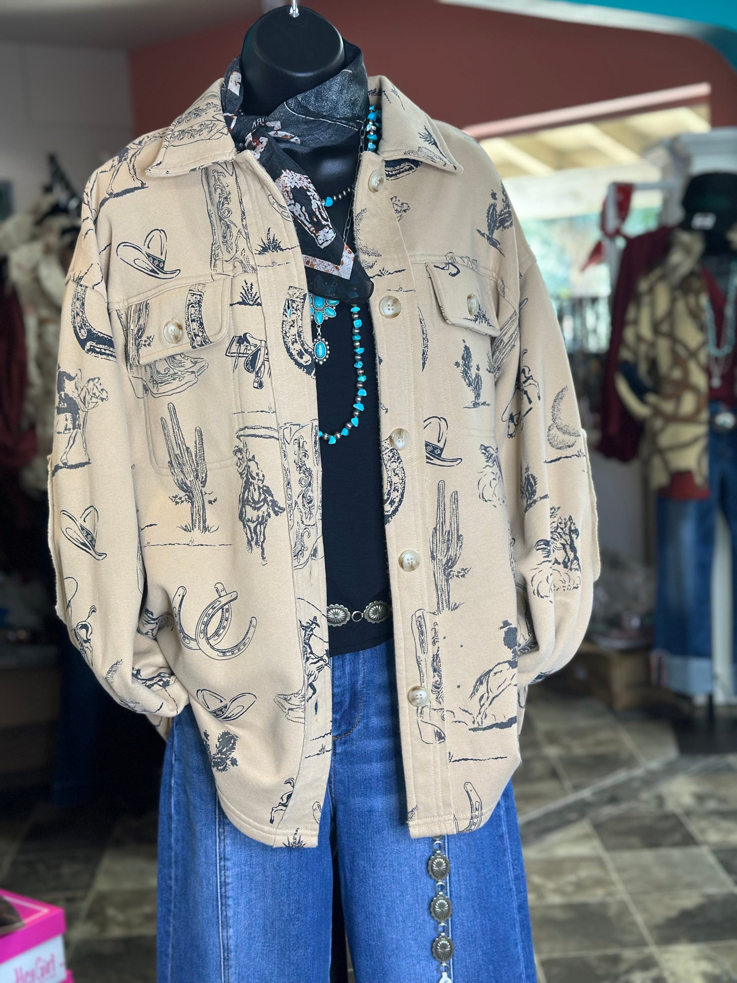 This is one of our fav market buys and it’s flying off the shelves! Cute western pattern on a cozy Shacket for some style, and a roomy fit like most Shackets! We suggest sizing down in this one! Don’t miss out on the cutest jacket yet - this super soft Shacket will be perfect for those cooler days and evening! Pairs perfectly with our Graphic Tees too!